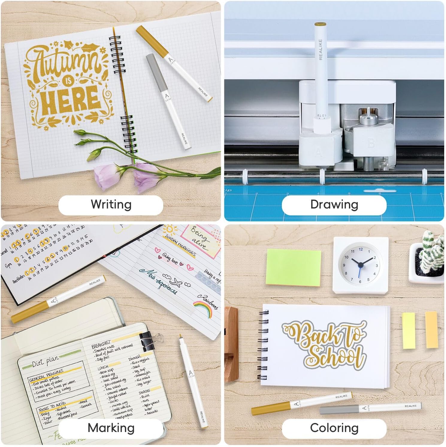 - ACRYLIC PAINT PEN FOR MACHINE: REALIKE multicolor acrylic markers set are designed specifically for Maker 4/Maker 3/Maker/Explore 4/Explore 3/Air 2/Air, they can write and draw perfectly with the cutting machine. Note: They can work directly in the machine without an pen adapter.