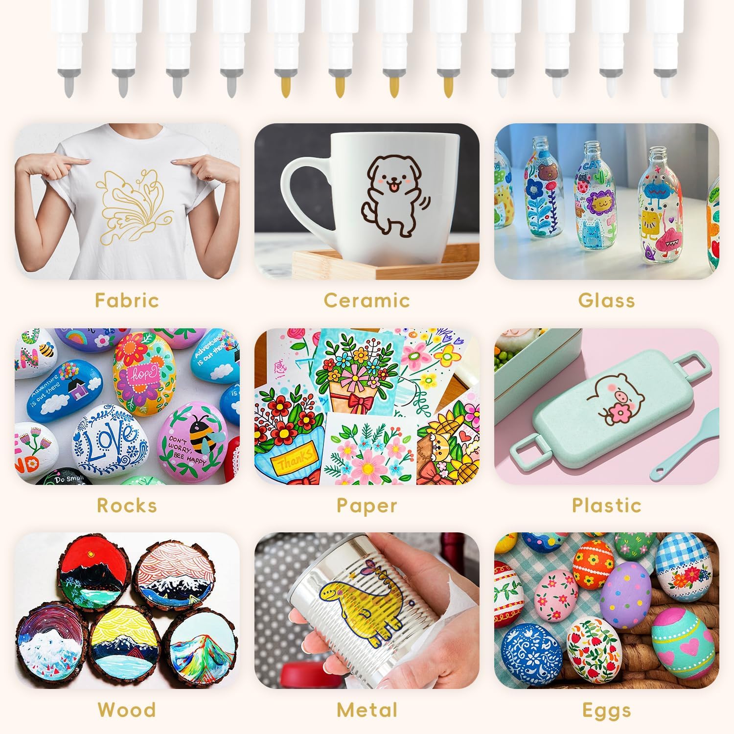 - REALIKE acrylic paint marker set of 12 pack include 2 pcs 1.0 tip silver pens, 2 pcs 2.0 tip silver pens; 2 pcs 1.0 tip gold pens, 2 pcs 2.0 tip gold pens; 2 pcs 1.0 tip white pens, 2 pcs 2.0 tip white pens. Great for invitations,handmade cards, scrapbooks, DIY projects and unique gifts.