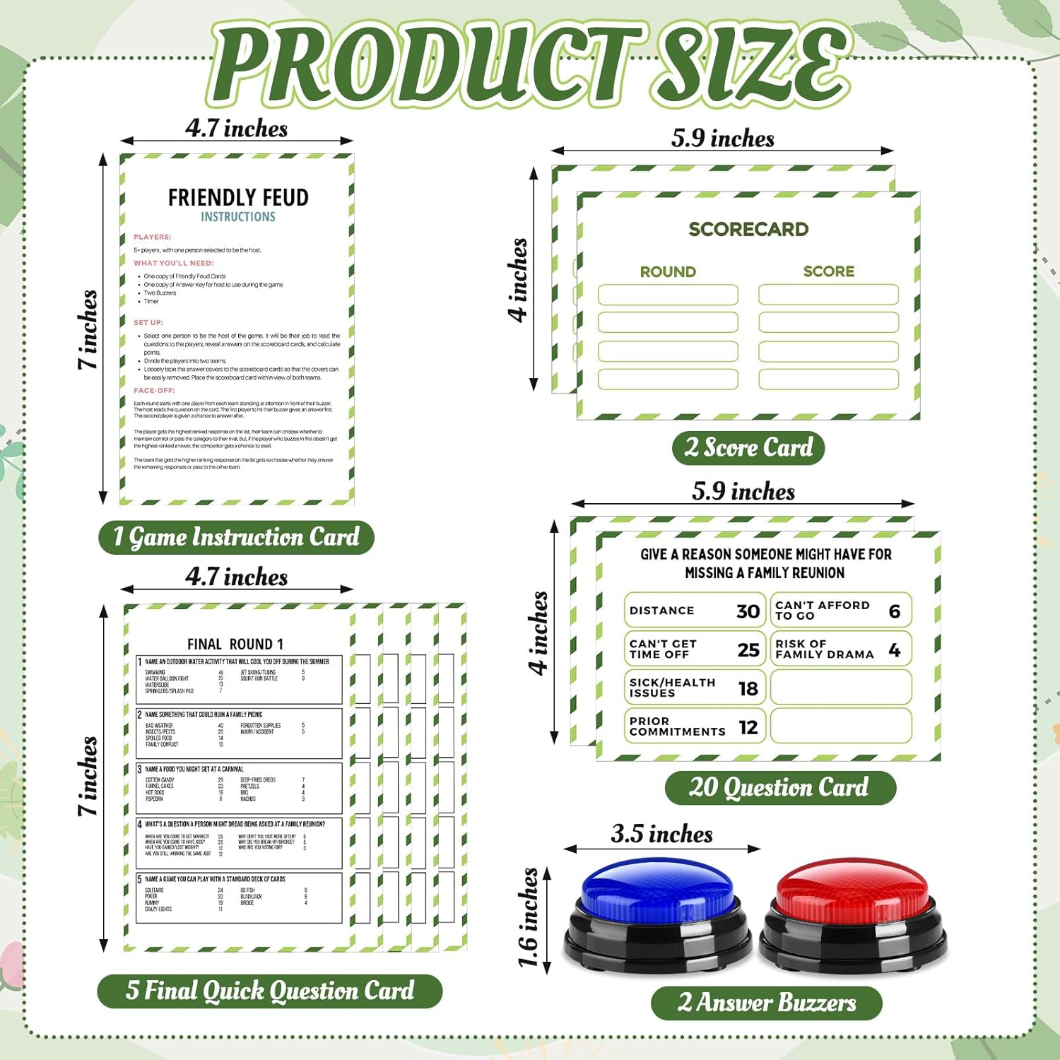 - Family Reunion Friendly Feud Game Set: enjoy a lively trivia night with our complete set, includes 1 game instruction card, 2 score cards, 20 bible theme question cards and 5 quick final game cards, 28 cards in total for non-stop fun