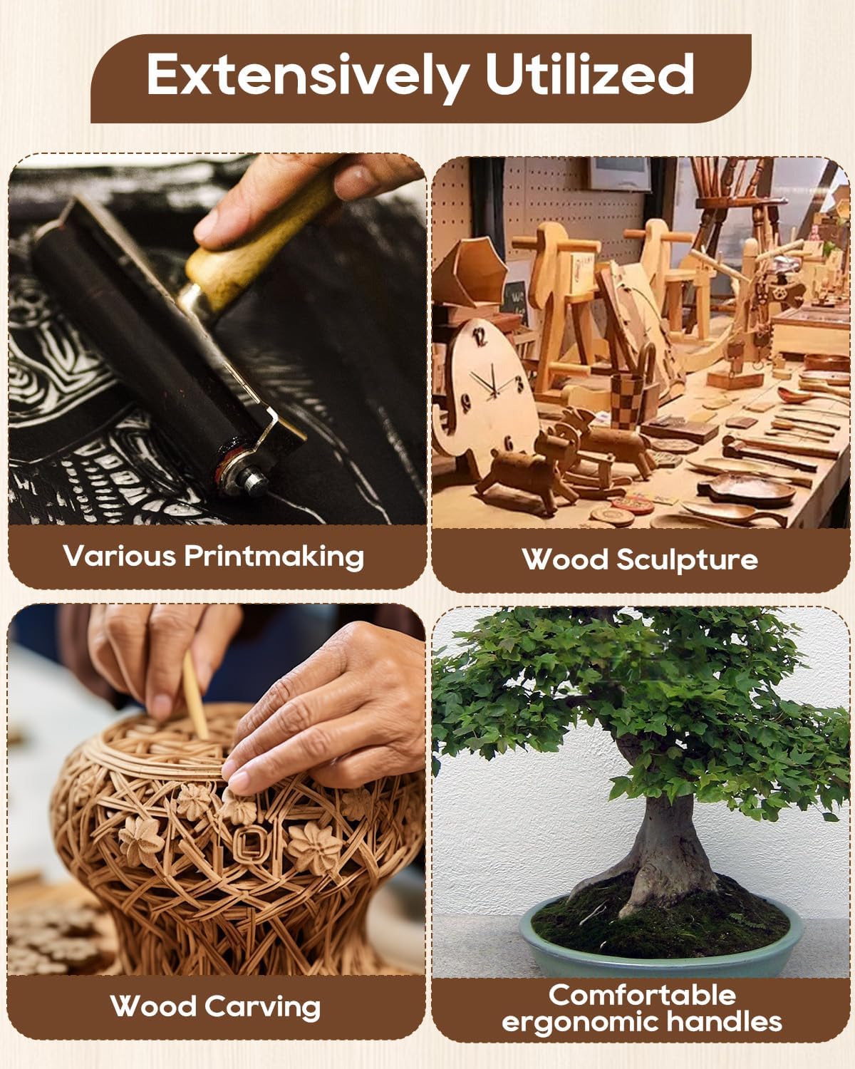 - Versatile for Wood Carving, Linocut, and Whittling Kit Projects: This wood carving kit is perfect for a wide range of projects, from wood whittling kit tasks to stamp carving tools and carving tools for detailed work. Whether you're working on wood carving chisels for intricate carvings, or experimenting with linoleum carving tools for linocut printmaking, this set provides everything you need to create stunning works of art