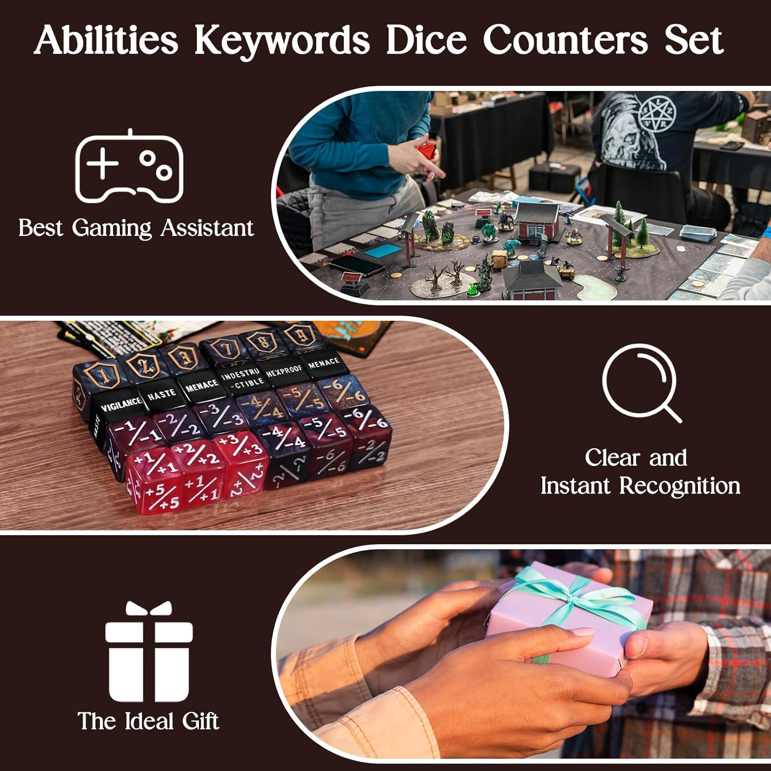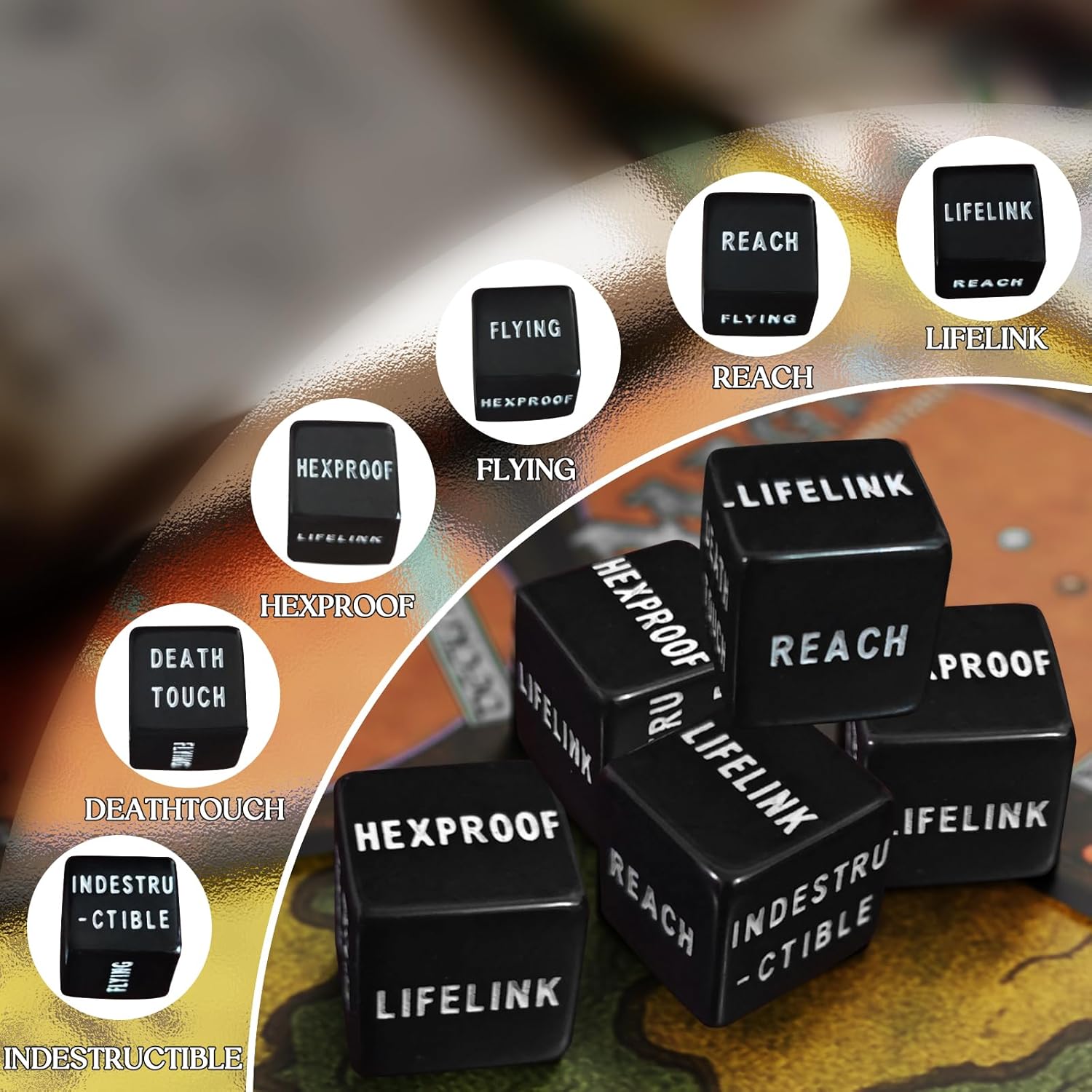 63 PCS MTG Dice Counters Set, D6 MTG Tokens with Bulk Abilities Keywords and MTG Life Counters, Dice Set for Magic The Gathering, TCG and Card Games
