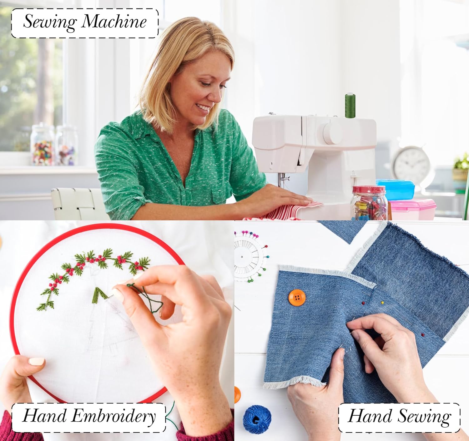 - Craft Like a Pro, Stress-Free: Whether you're a beginner learning your first stitches, a busy mom mending torn jeans, or a seasoned quilter tackling intricate patterns, our high-quality polyester thread is strong, durable, and won't fray, fade, or shrink. Focus on your creation, not thread worries!
