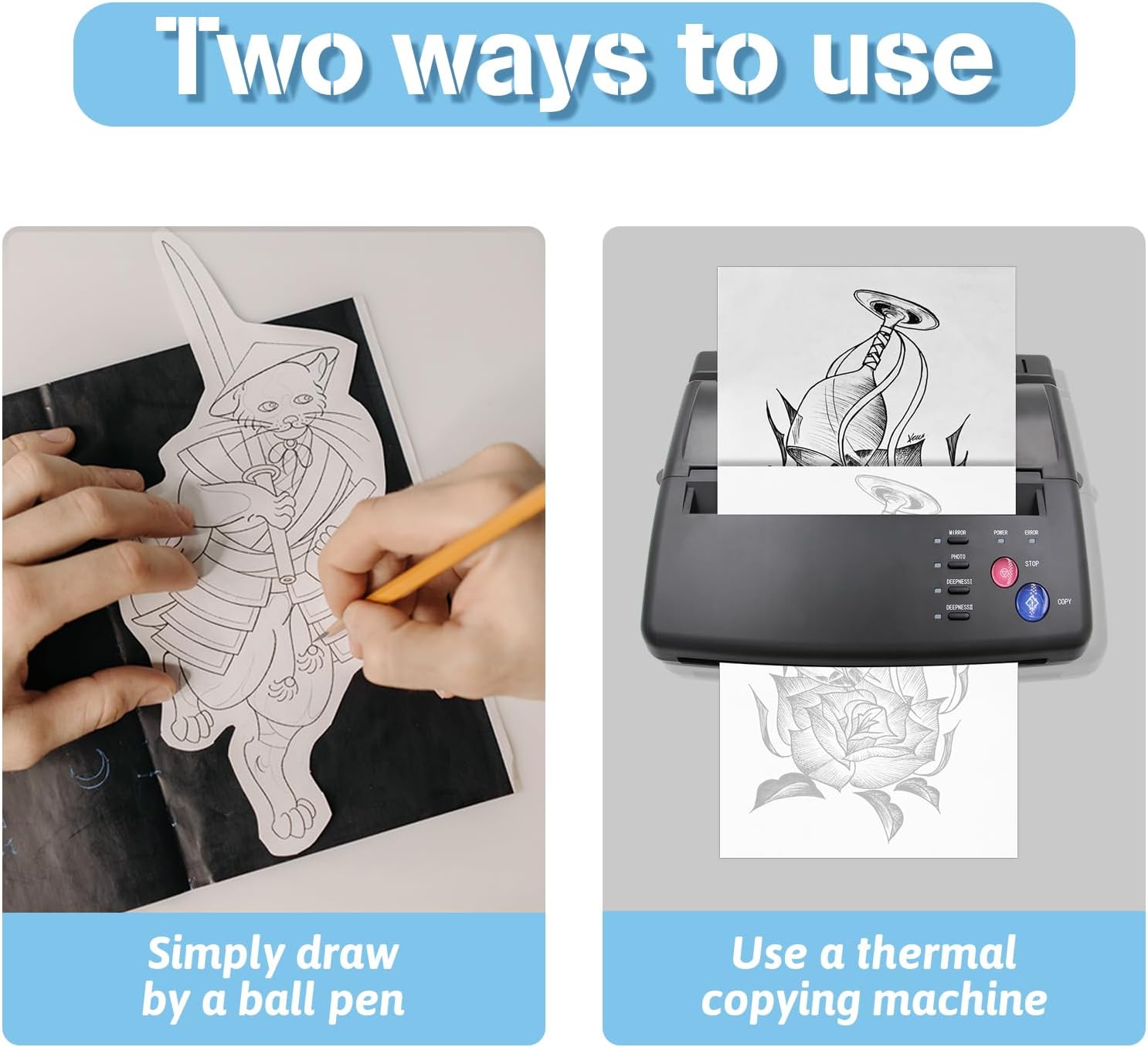 - 🖨️【Choose Your Method: Thermal or Hand-Drawn】 - Ultimate flexibility! Use effortlessly with your thermal copier for super-crisp transfers. Prefer sketching? Just grab a ballpoint pen & draw your design directly! Your creativity, your way!