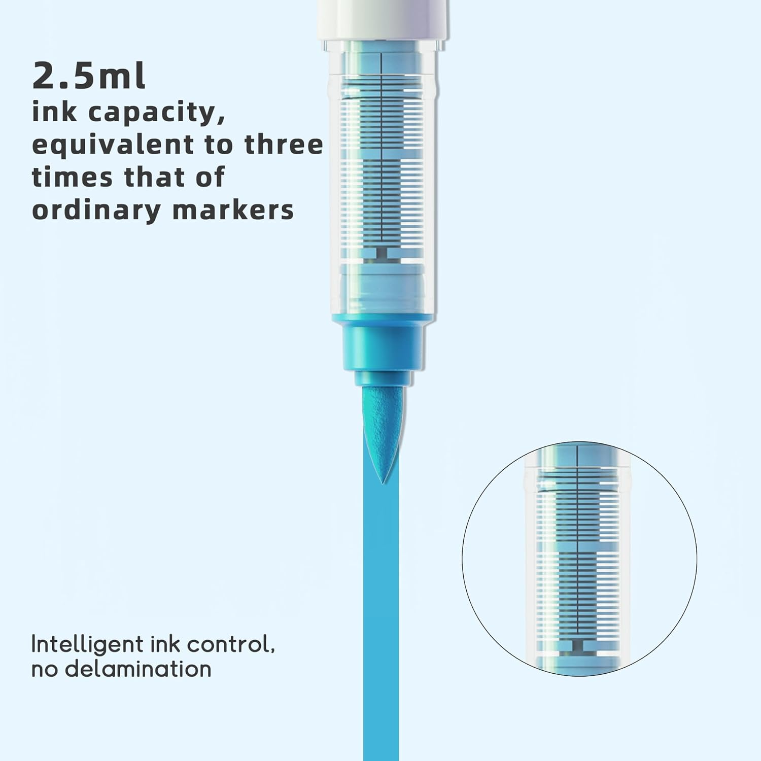 - Smart Brush Tip & Ink Control Technology: The soft brush tip creates 1-5mm lines by angle adjustment, ideal for both detailing and filling large areas. Advanced auto-flow control system prevents ink clogging and leakage - simply shake before use for smooth, even ink distribution without pressing. Store horizontally to maintain optimal performance