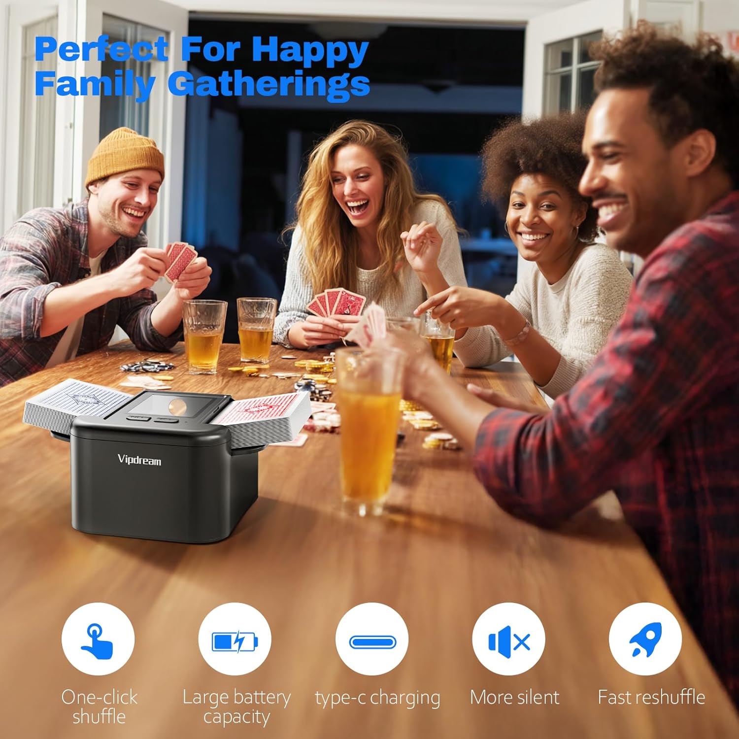 - Rechargeable & Portable Design: This card dealer Built-in rechargeable battery, say goodbye to the trouble of disposable battery and supports USB-C fast charging. Small and lightweight body design, easy to store and carry, is an ideal choice for family gatherings, travel and camping, and outdoor activities