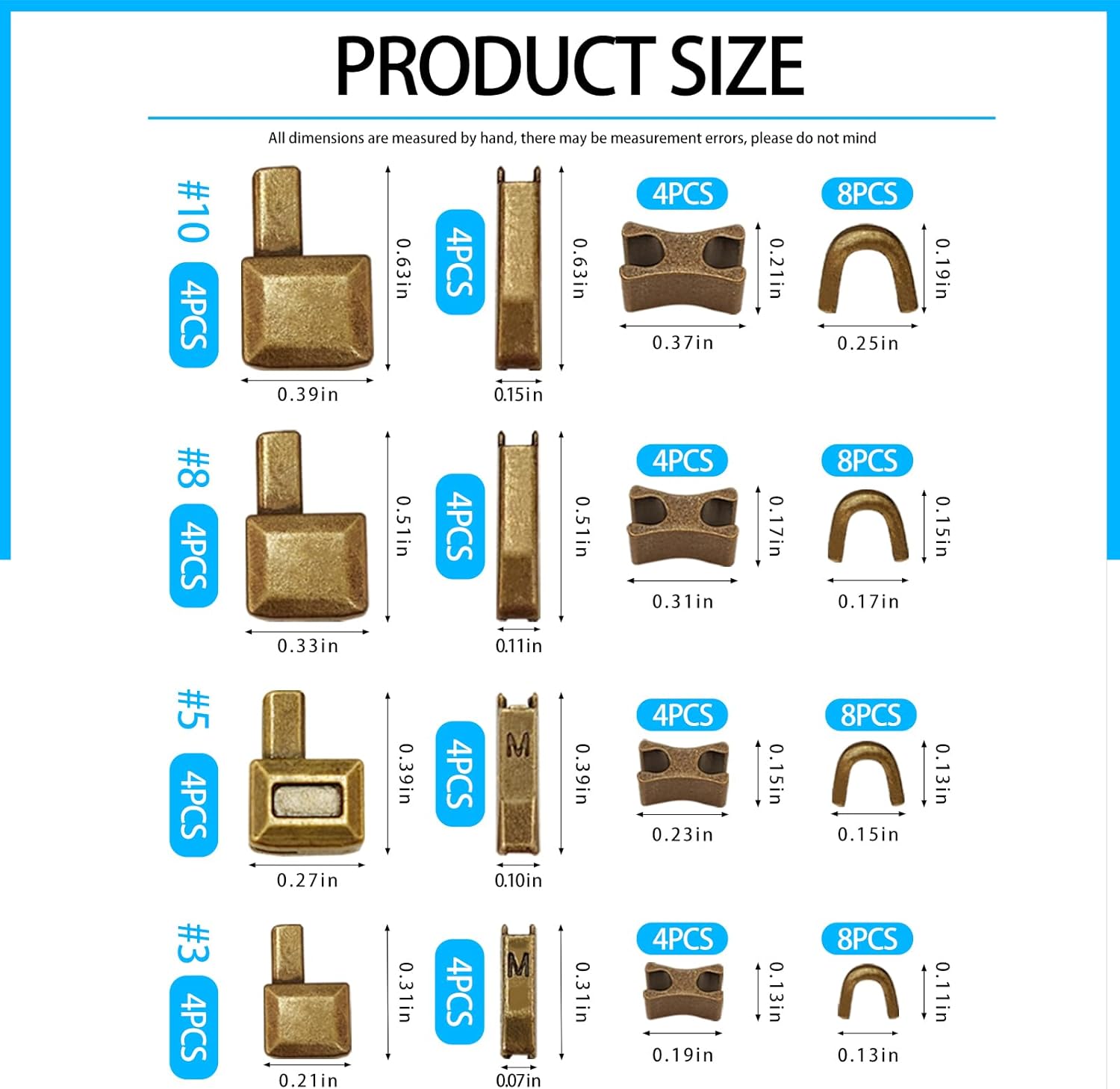 - Included Components : 3# Retainer Boxes, 3# Insertion Pins, 3# H Shape Zipper Bottom Stops, 8# U Shape Zipper Top Stoppers, 5# Retainer Boxes, 5# Insertion Pins, 5# H Shape Zipper Bottom Stops, 8# U Shape Zipper Top Stoppers, 8# Retainer Boxes, 8# Insertion Pins, 8# H Shape Zipper Bottom Stops, 8# U Shape Zipper Top Stoppers, 10# Retainer Boxes, 10# Insertion Pins, 10# H Shape Zipper Bottom Stops, 8# U Shape Zipper Top Stoppers 3# Retainer Boxes, 3# Insertion Pins, 3# H Shape Zipper Bottom Stops, 8# U Shape Zipper Top Stoppers, 5# Retainer Boxes, 5# Insertion Pins, 5β¦ See more