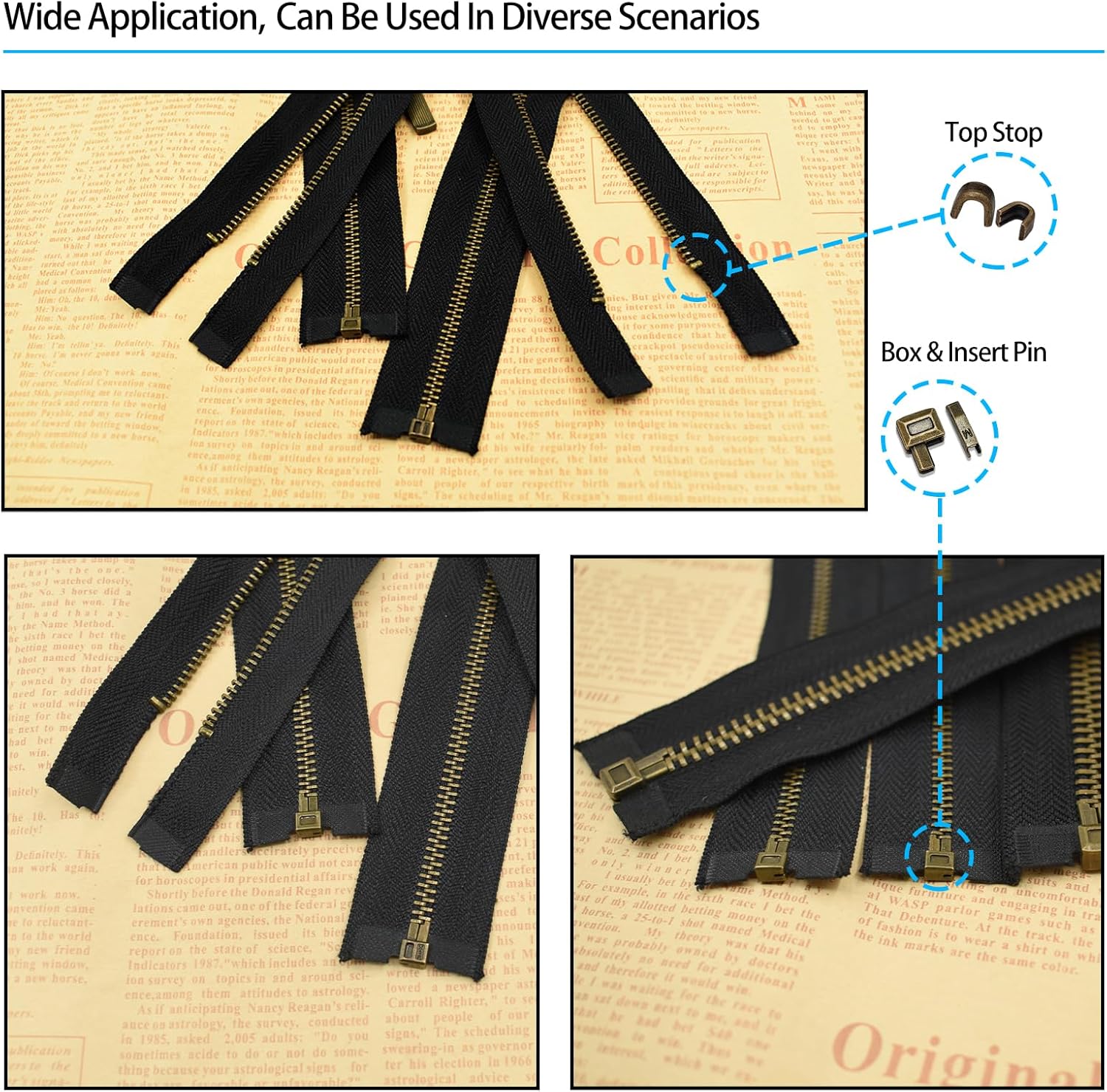 - Widely Used: Four common sizes of zipper assemblies for various zipper items such as skirts, jackets, backpacks. With them, you can solve small problems in your daily life.