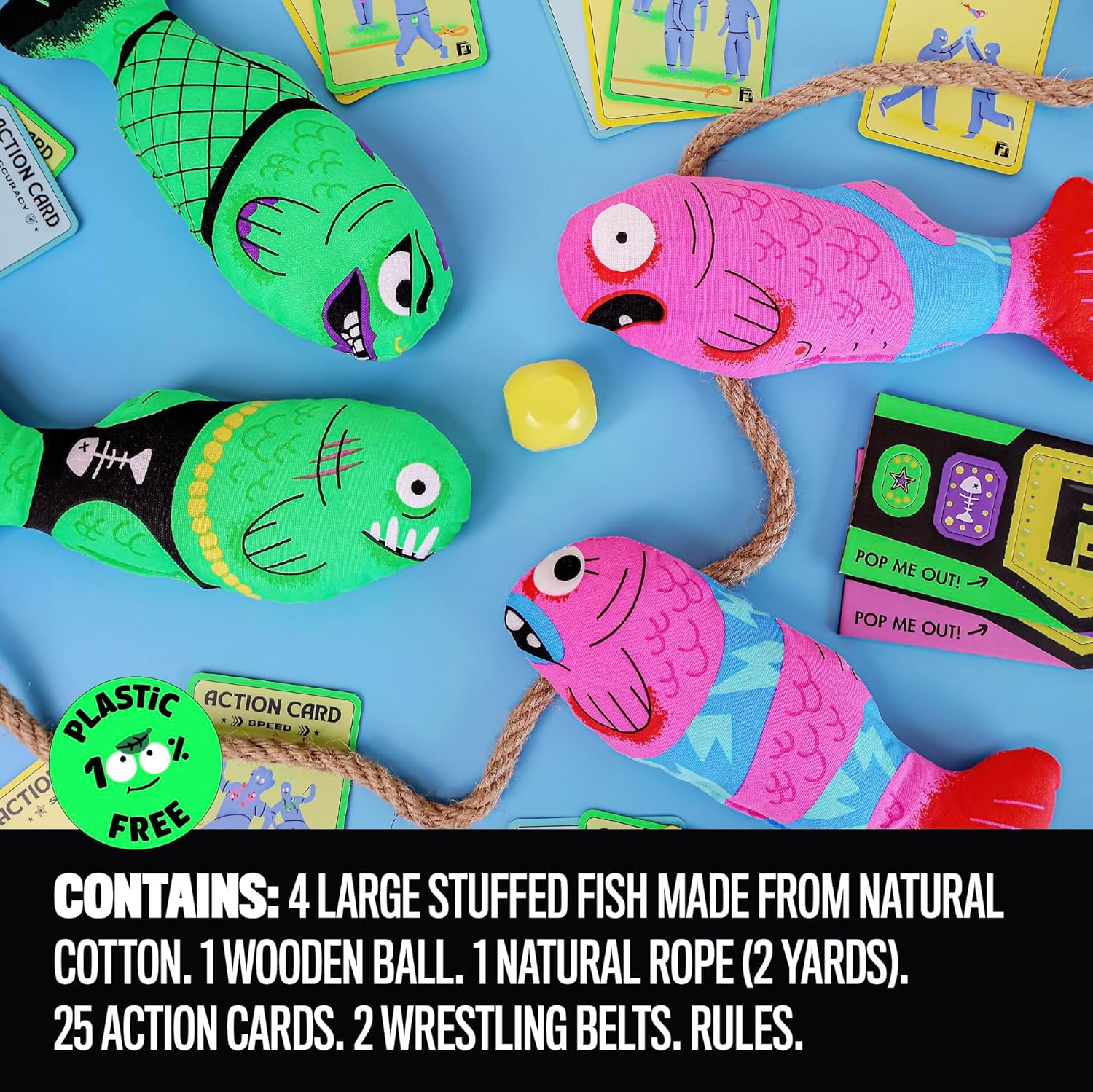 - 100% Plastic free - Shipmates, we’ve gone green! FiSH FIGHT is made from planet-friendly materials like cotton, wood, jute, and cardboard—nothing from ‘below the soil’ like oil-based plastic. Because plastic belongs nowhere near the ocean (or your party). We believe games should leave you smiling, not polluting. So have a bucketload of laughs, guilt-free. Good times, zero waste!