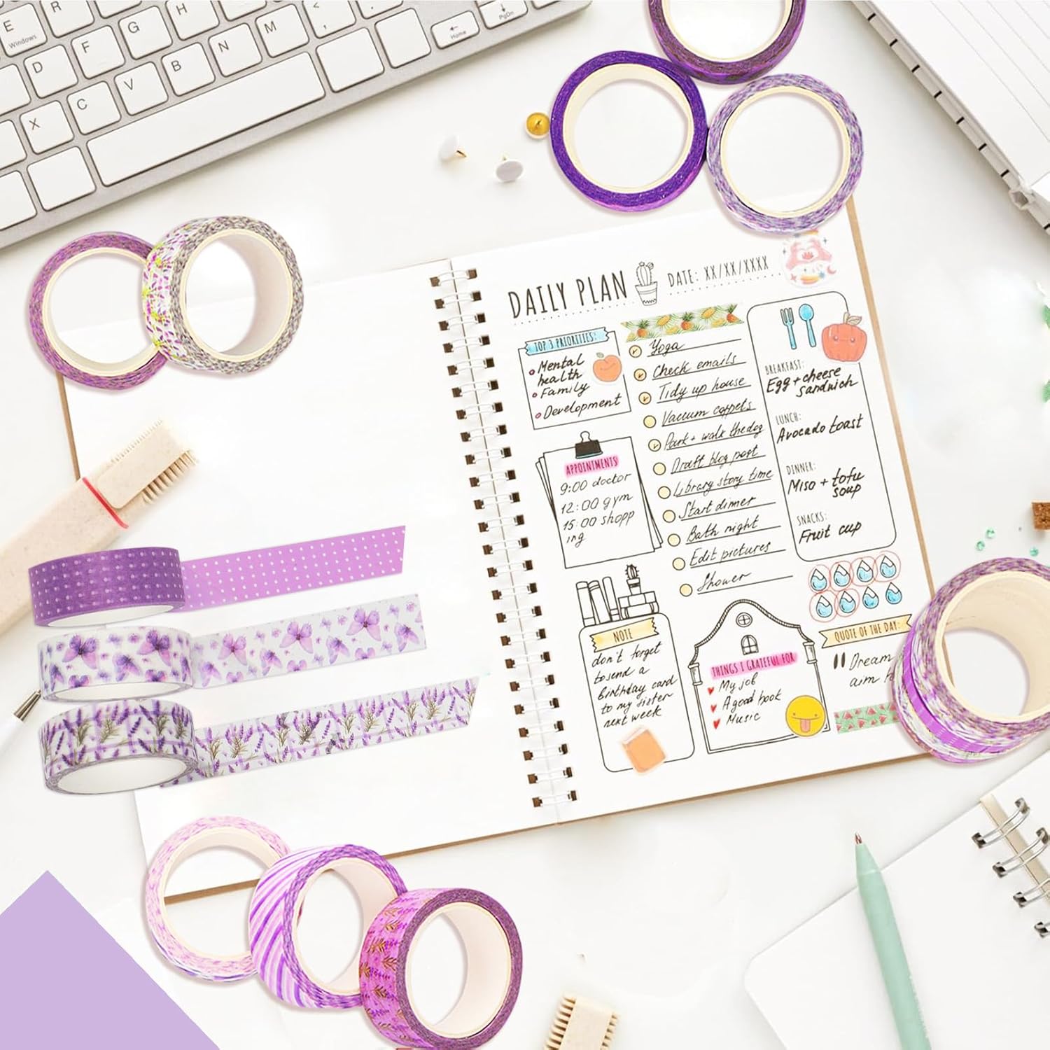 - VALUE PACKAGE: Receive 12 rolls of purple washi tape featuring dreamy lavender hues, delicate florals, and whimsical butterflies! With designs ranging from soft gradients to hand-drawn motifs, these tapes effortlessly add romantic charm to journals, planners, scrapbooks, and DIY crafts.