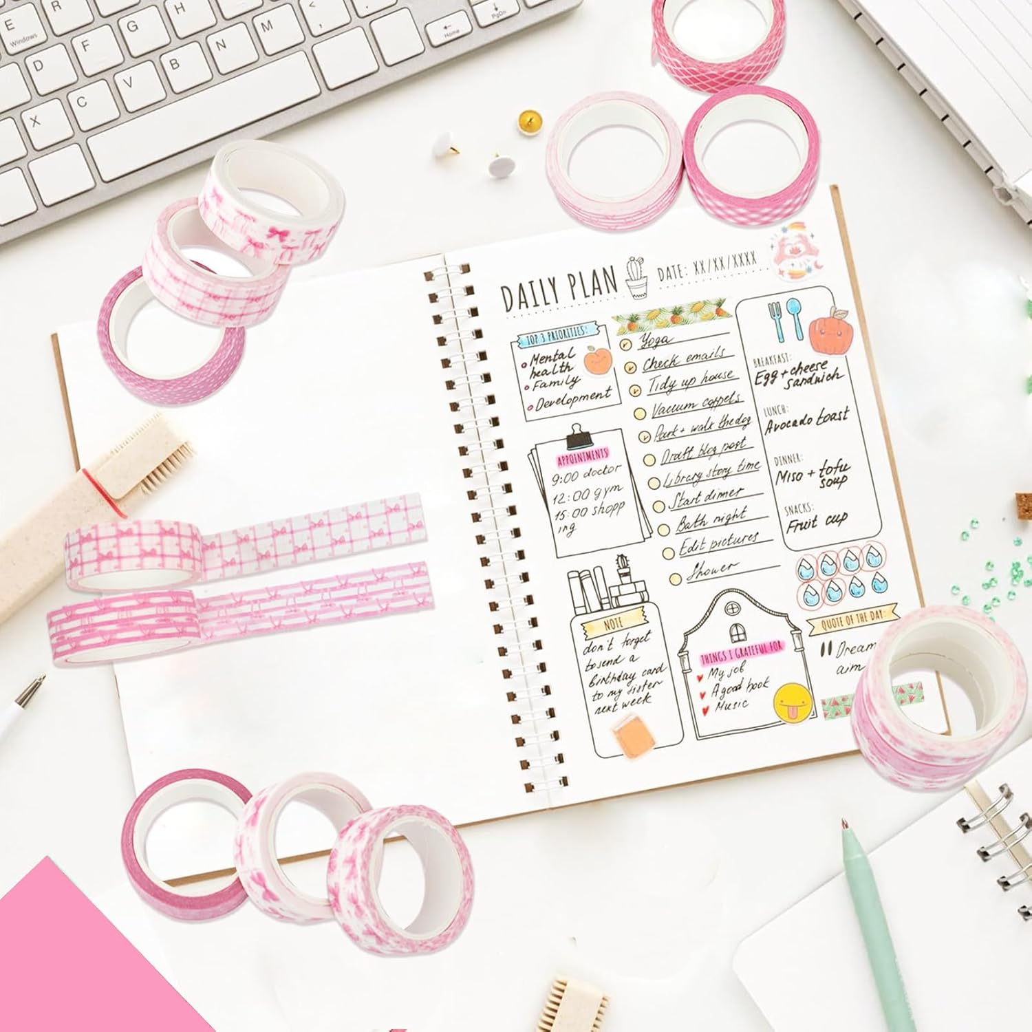- VALUE PACKAGE: Receive 12 rolls of pink bow washi tape featuring romantic bowknots and buffalo plaid patterns. These tapes effortlessly add charming elegance to journals, planners, scrapbooks, and DIY crafts.