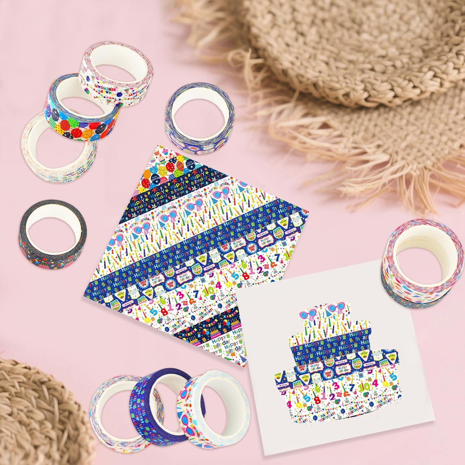 - UNIQUE & EXQUISITE DESIGN: Explore 12 unique birthday patterns, including cakes, candles, balloons, party hats, ribbons, and more. These vibrant designs will add color and creativity to your birthday crafting projects. Perfect for party decorations, gift wrapping, or special celebrations.