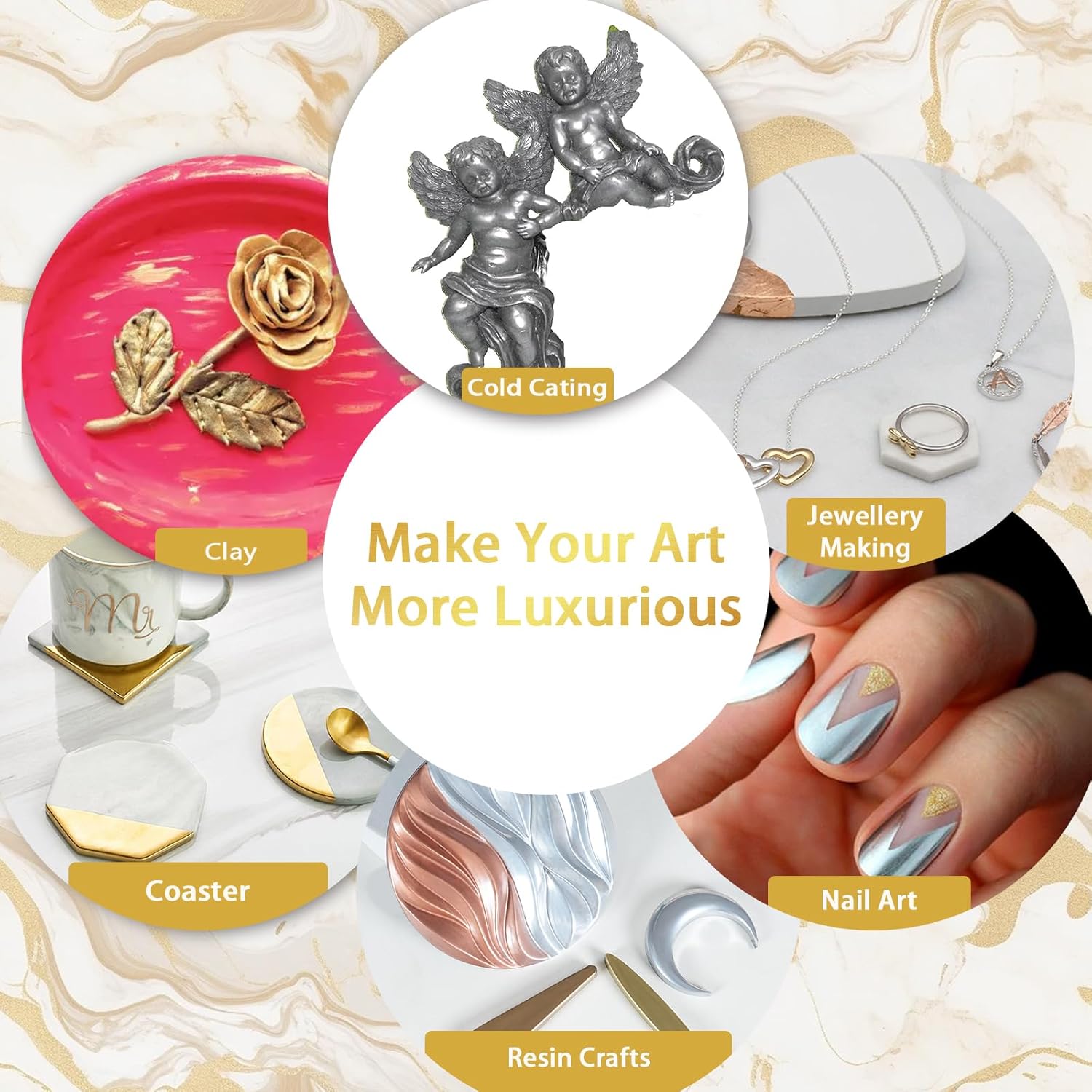 - ✅Creative Versatility - As part of a Kintsugi repair kit, metallic pigments can be mixed with Crack Filler or glue to make cracks on pottery become luxurious and lustrous. Metallic pigment powder also suits to create chrome effects in nail art and achieve marbled finishes when mixed with polymer clay. Epoxy pigment also can be mixed with metallic paint, epoxy resin paint and epoxy paint to rube onto the edges of silicone molds to create metallic edges for coasters, trays, countertops, and jewelry.
