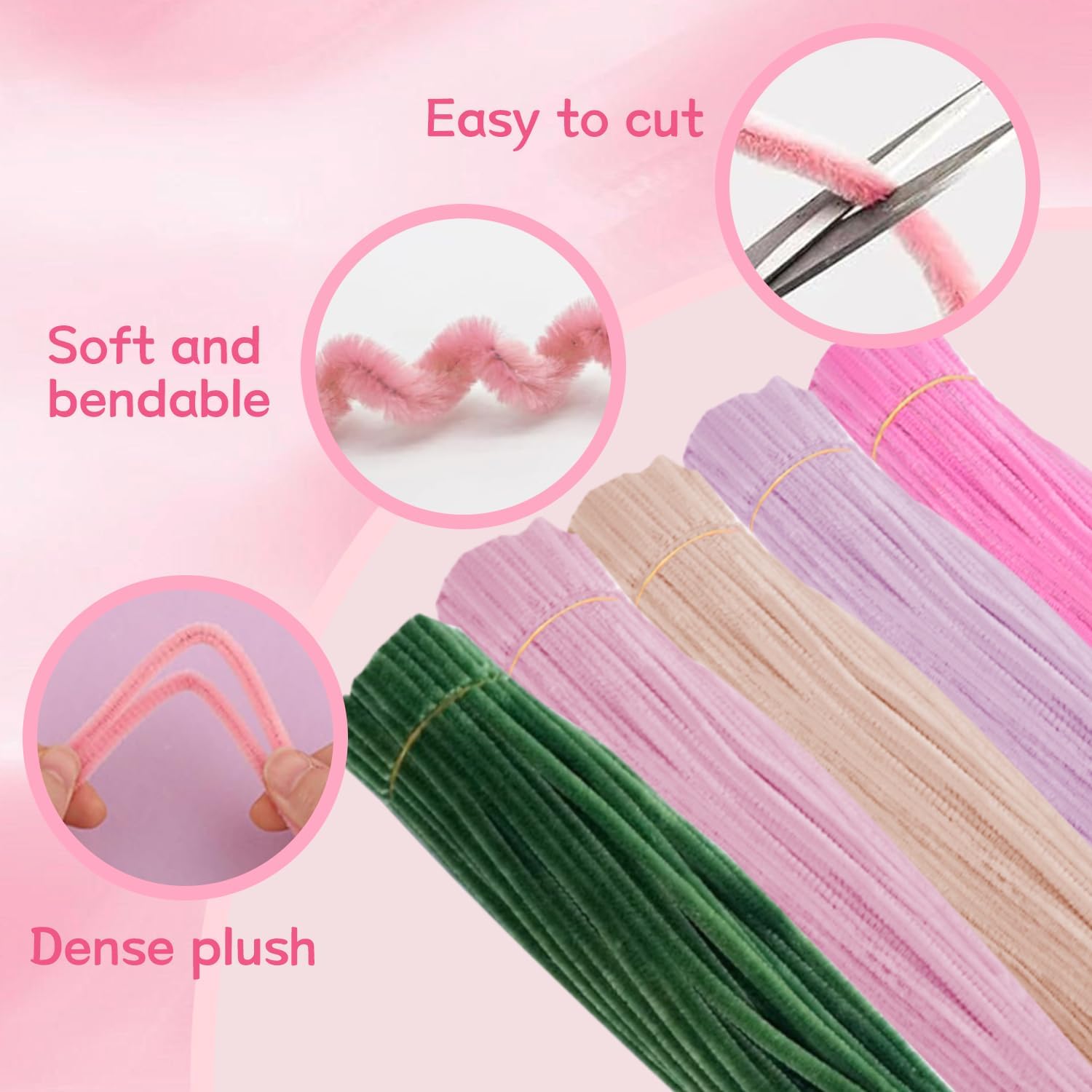 - 💐【Pipe Cleaner Flower Kit for Beginners】:includes all crafting accessories for tulip bouquets,500pcs Multi-Color Pipe cleaners Craft:400 different tone pink pipe cleaners+ 100 green pipe cleaners, 20 floral stems,100 stamen,4pcs hot glue sticks, 1 roll of ribbon(118in),2 adhesive tapesand and video tutorials.