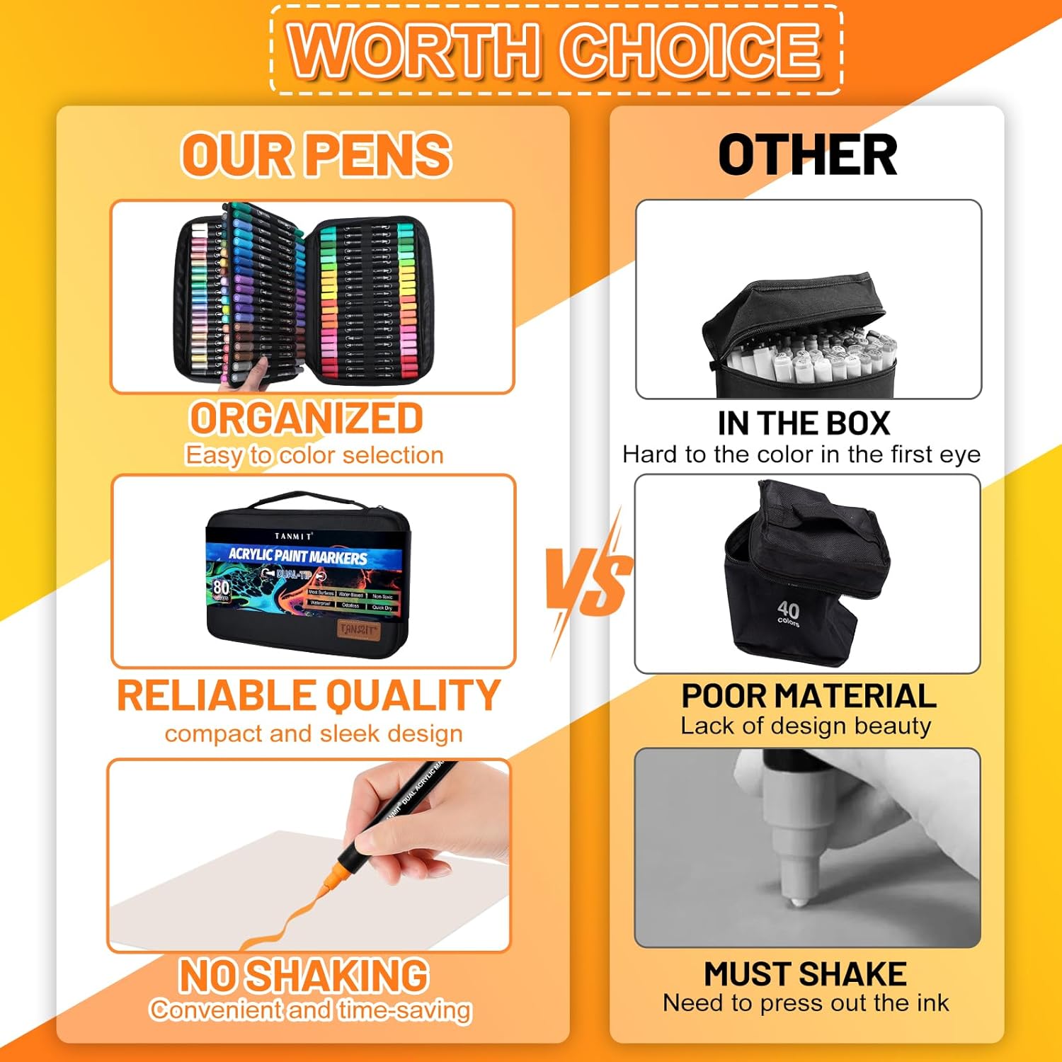 - VIBRANT COLORS: This complete set of TANMIT dual Tip acrylic markers comes with 80 unique and vibrant color options to choose from, rich primary and complementary colors with no duplicates, and each color goes with the corresponding number on the pen for easy identification and organization, making it easy for you to choose exactly the right color every time. A variety of colors allows you to let your imagination run wild and have unlimited creative possibilities~