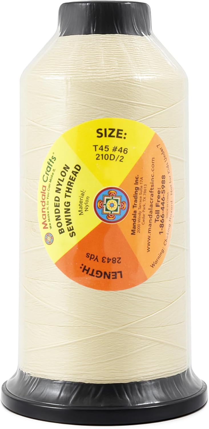 Mandala Crafts Size 46 210D T45 Bonded Nylon Thread Ivory Heavy Duty Sewing Threads - 2843 YDs Tex 45 Thread for Leather, Jeans, Weaving, Outdoor Marine Upholstery Threads