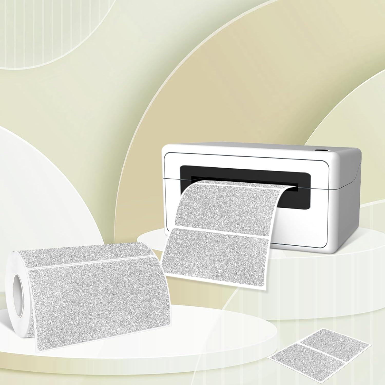 2" x 4" Glitter Silver Thermal Label Stickers,Waterproof Thermal Printer Sticker Labels for Gift Wrapping, Self-Adhesive Name Price Tag DIY Custom Logo Design (250 pcs,Silver)