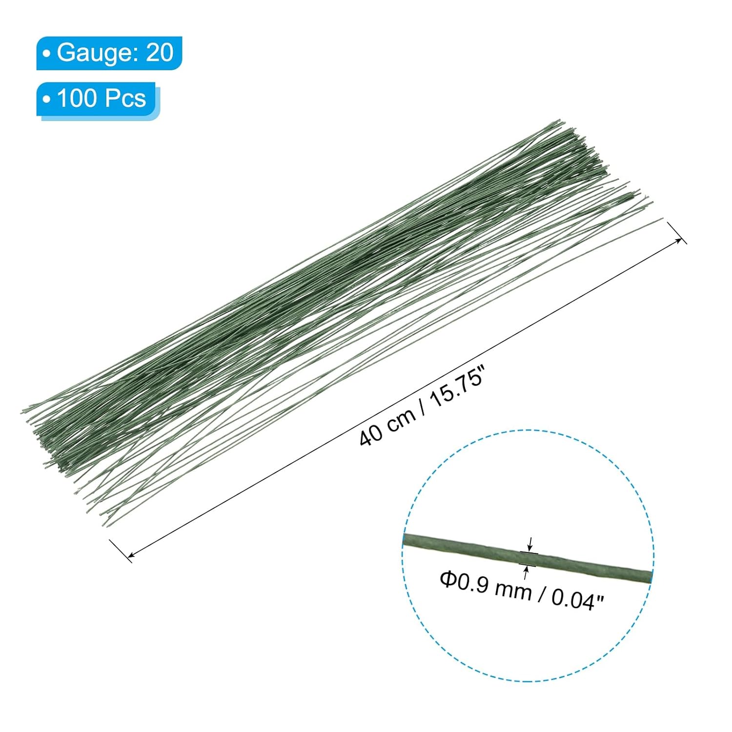 - Color: Dark Green; Gauge: 20; Wire Length: 40 cm / 15.75 inch; Wire Diameter: 0.9 mm / 0.04 Inch; Packing List: 100 x Floral Stem Wire