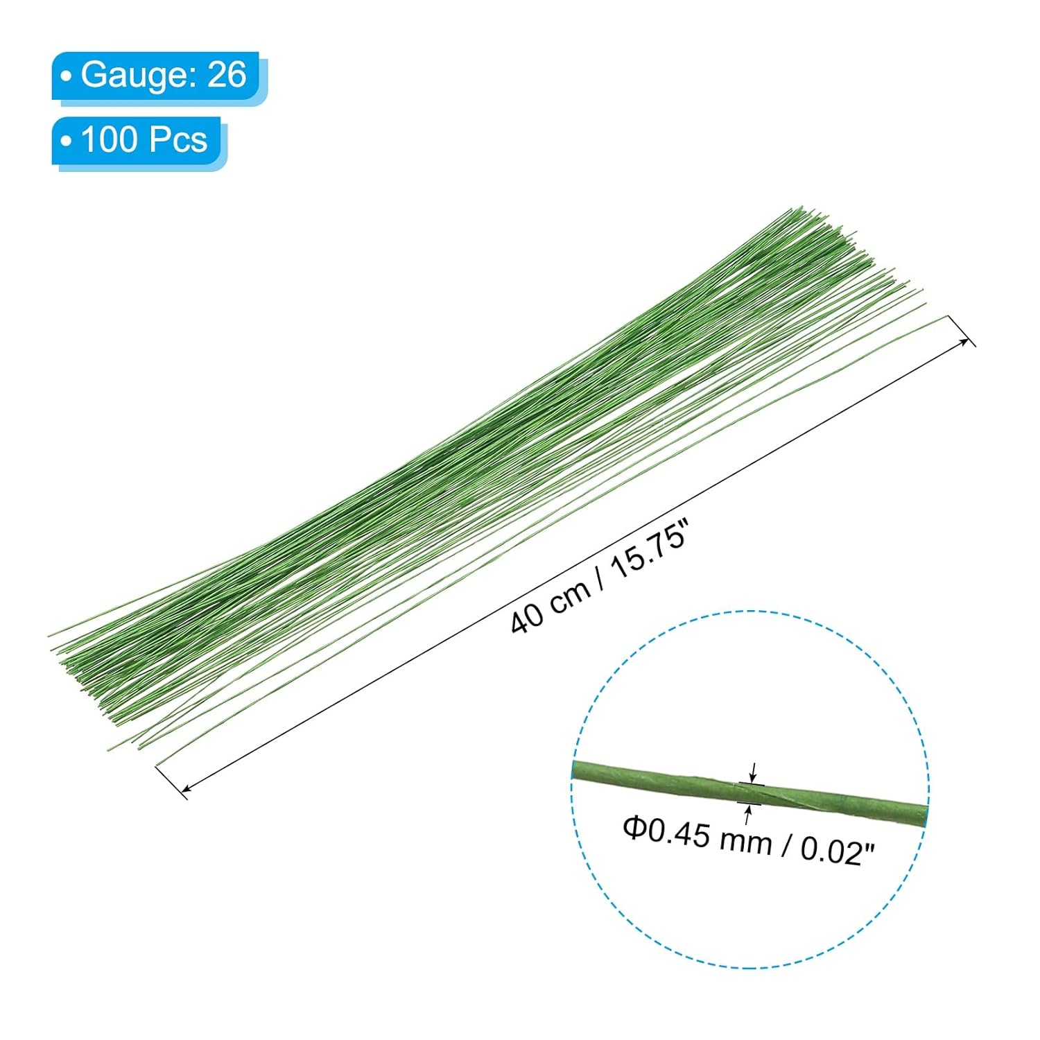 - Color: Light Green; Gauge: 26; Wire Length: 40 cm / 15.75 inch; Wire Diameter: 0.45 mm / 0.02 Inch; Packing List: 100 x Floral Stem Wire