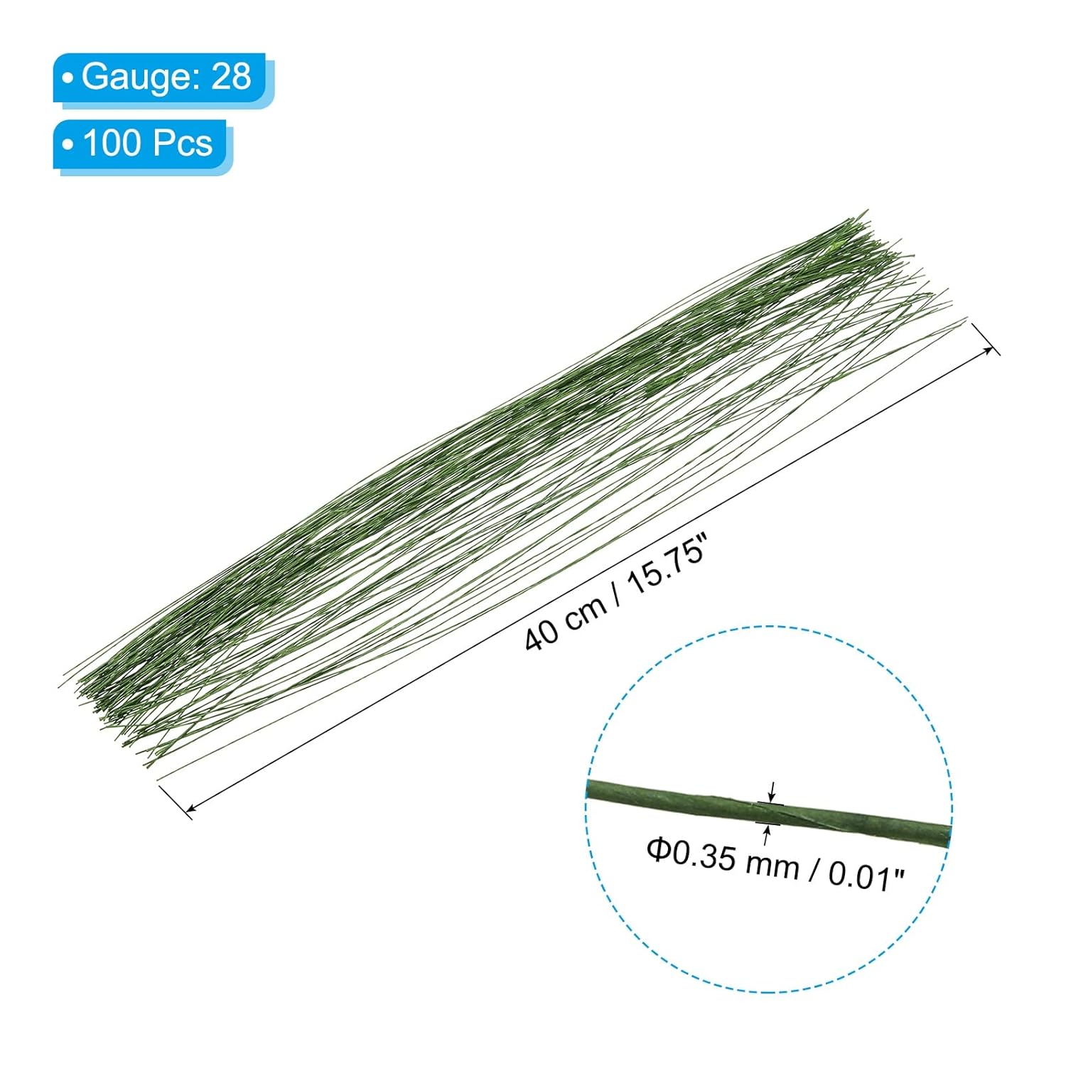 - Color: Dark Green; Gauge: 28; Wire Length: 40 cm / 15.75 inch; Wire Diameter: 0.35 mm / 0.01 Inch; Packing List: 100 x Floral Stem Wire