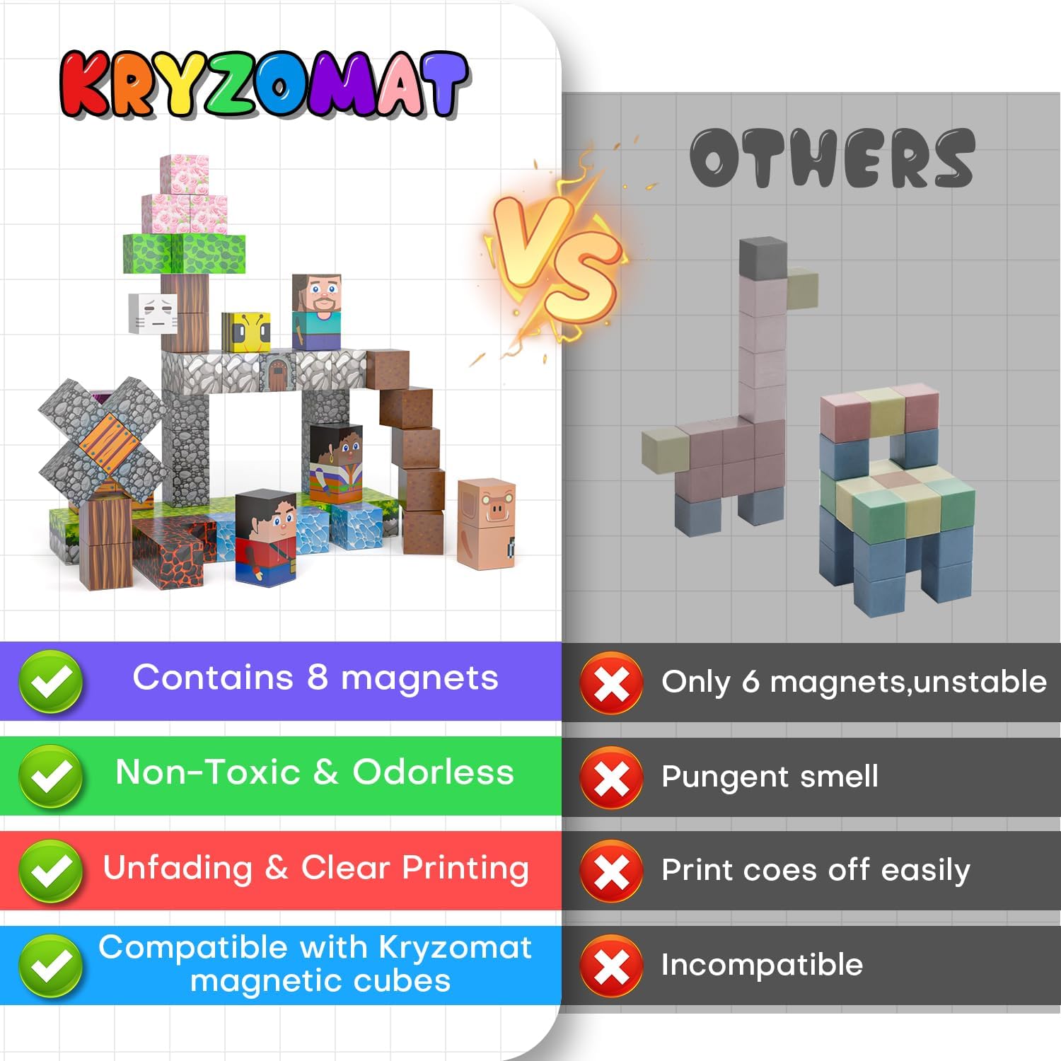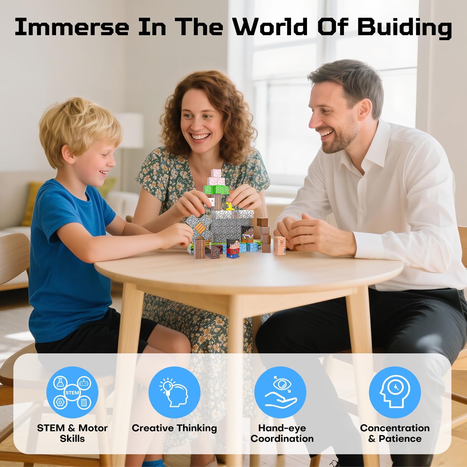 - Strong Magnetic Connection: Equipped with 8 powerful magnets, these cubes ensure stability whether for 3D structures or flat construction. These building blocks allow children to create a variety of scenes, letting your child build taller, more intricate designs without frustration or collapse
