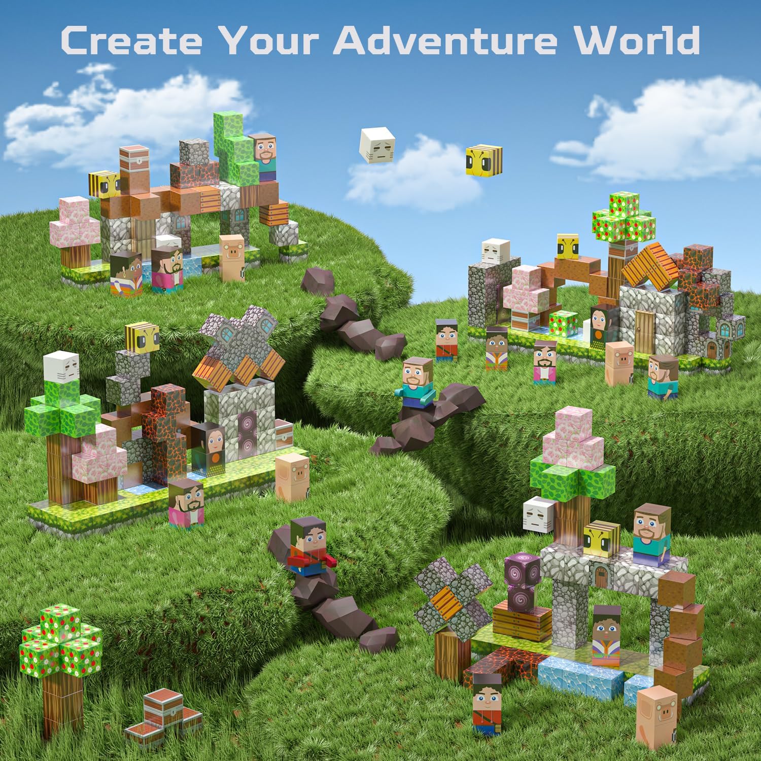 - Imaginations & Creativity Builder: Follow the heroes' footsteps and embark on a treasure hunt with magnetic building blocks! Spark the imagination of children with themes of lava, portal and forest. These magnet blocks offer immersive play, allowing kids to construct, demolish, and rebuild as they please.