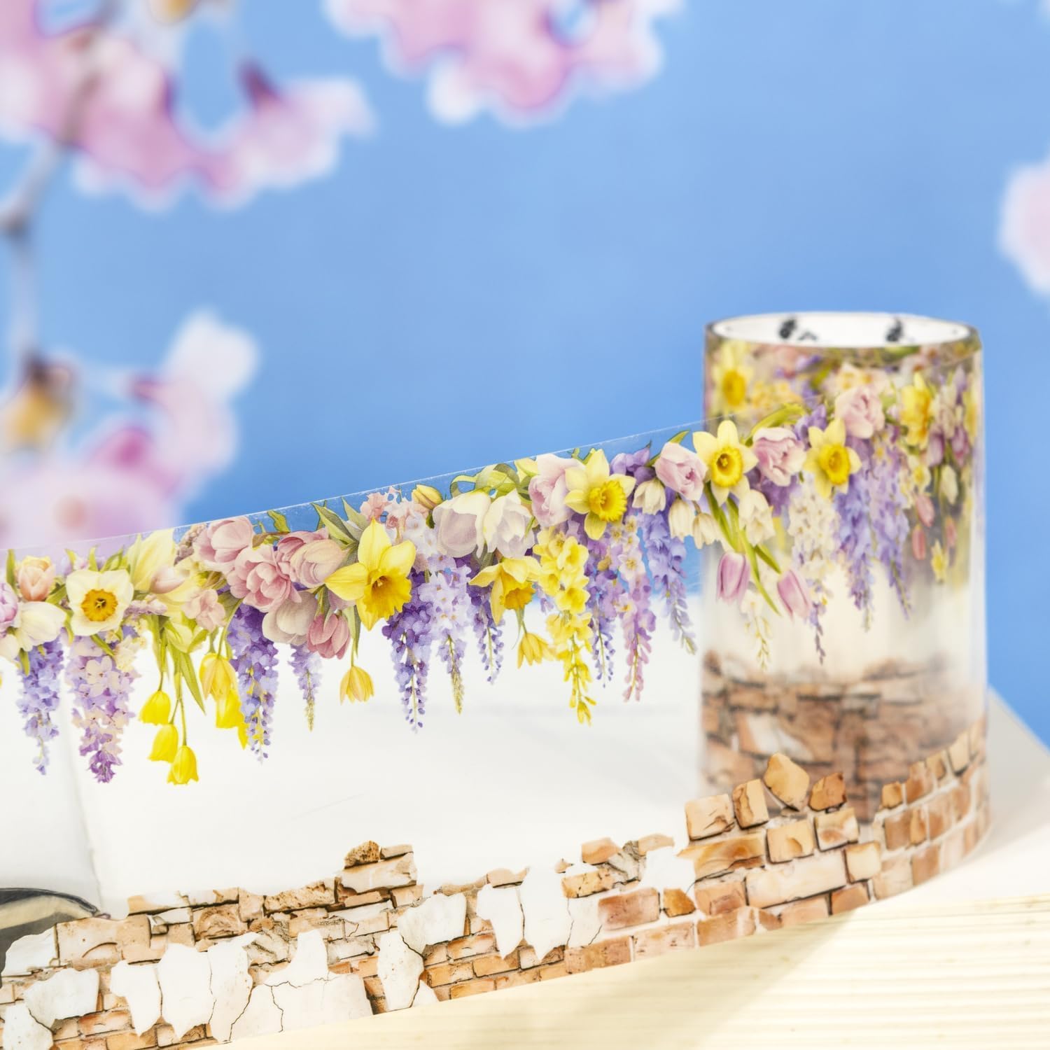 Flower Tape Stickers for Scrapbooking Supplies,6 Rolls PET Tape Stickers Set,Waterproof Washi Tape for Junk Journal,Journaling Supplies,DIY Craft(Floral Wa