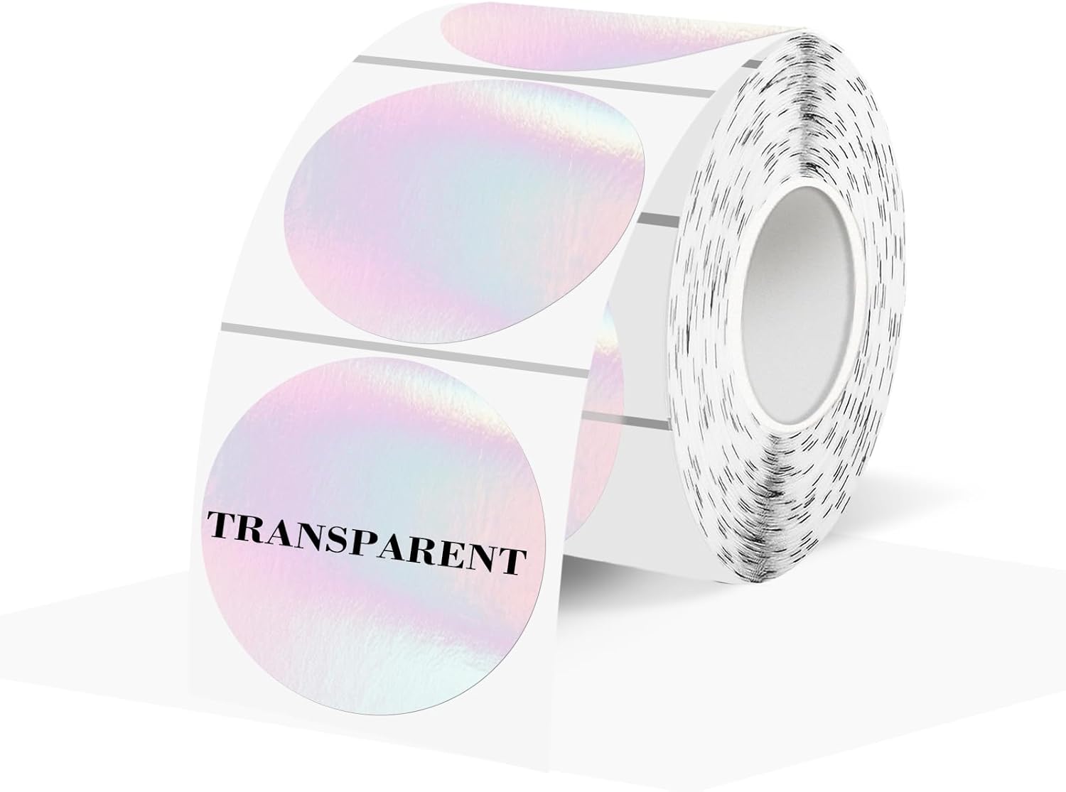 Transparent Thermal Labels Stickers 1.5 Inch, Clear Waterproof Direct Thermal Labels Stickers Self-Adhesive, Perforation Line Design (350 Pcs, Holographic Pink)