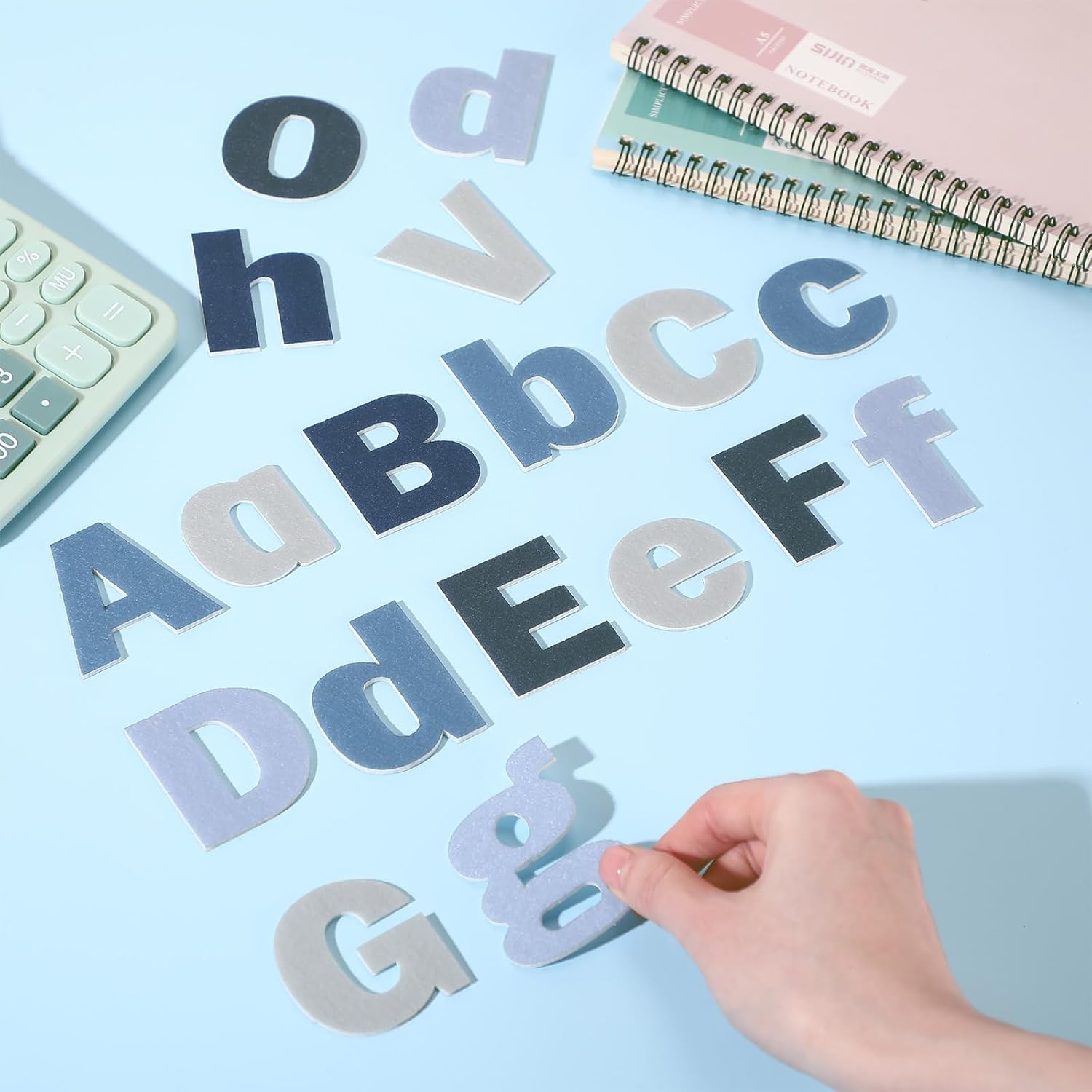 Breling 310 Pieces Felt Bulletin Board Letters Sticker with Number, 2" Bulk Self Adhesive ABC Upper Lowercase Sticky Letter for Christmas Gift Poster Bulletin Board Classroom(Blue Color)
