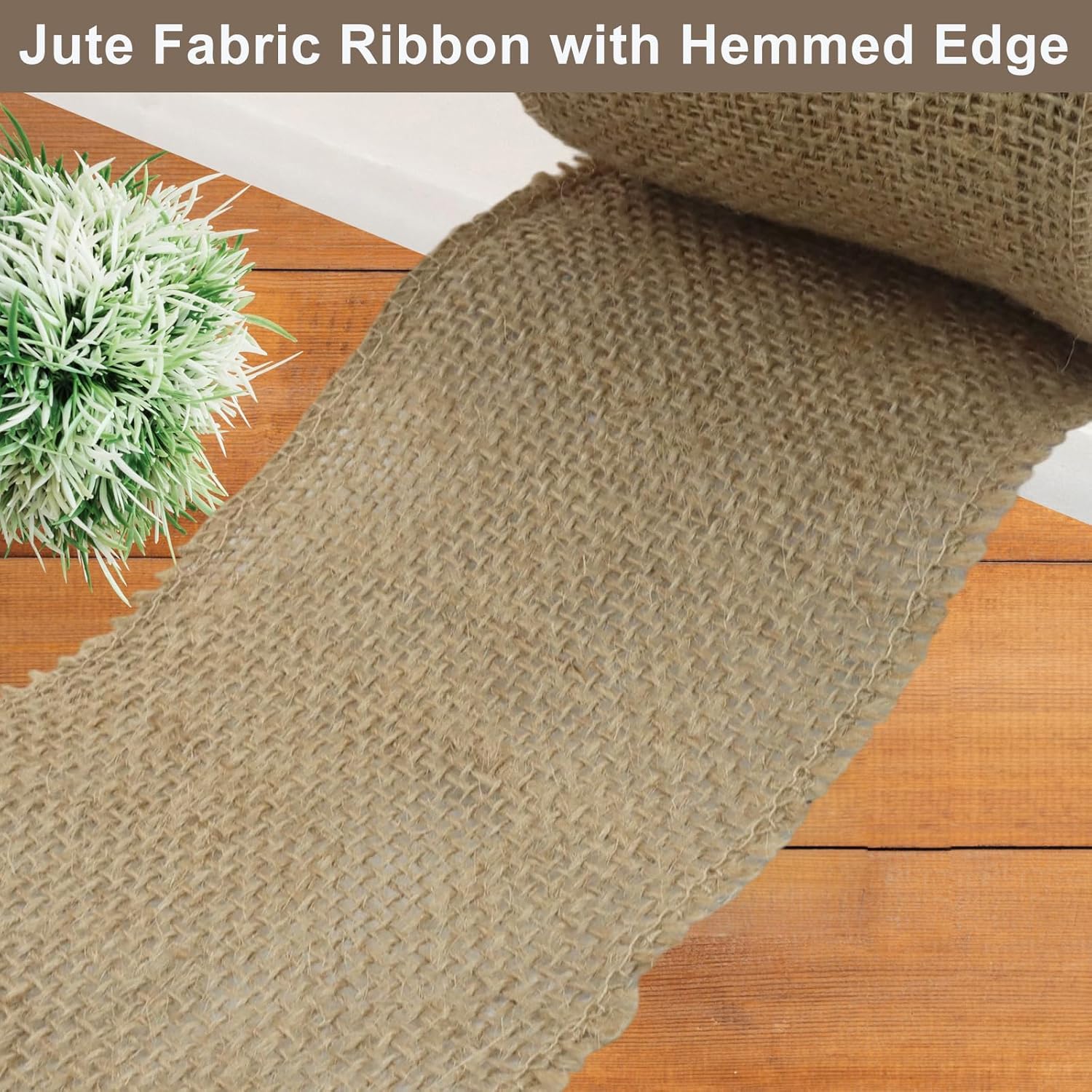 - Premium natural jute texture: Crafted from burlap ribbon with hemmed edges to prevent fraying. The raw jute fabric retains its rustic texture without synthetic coatings.