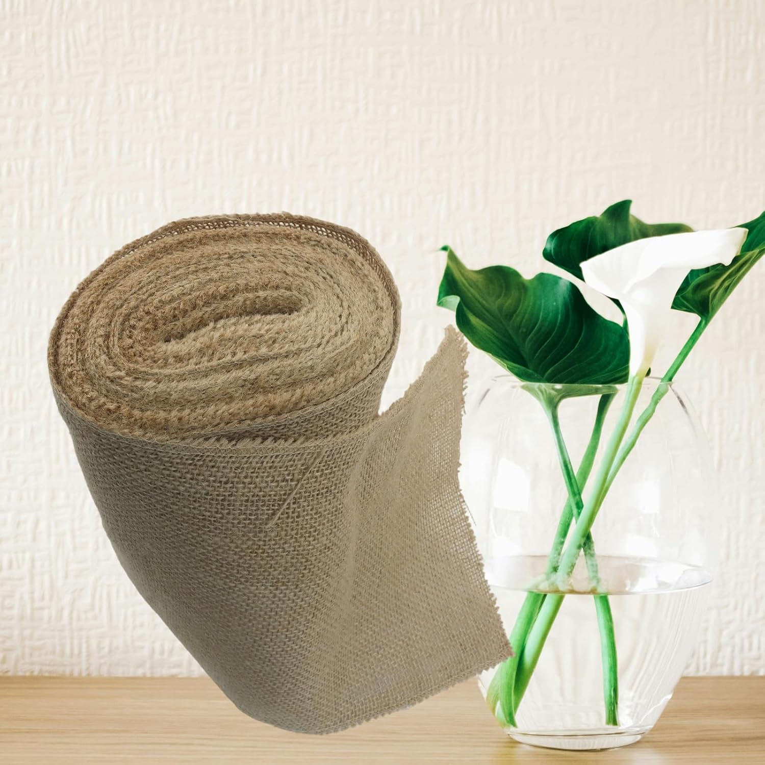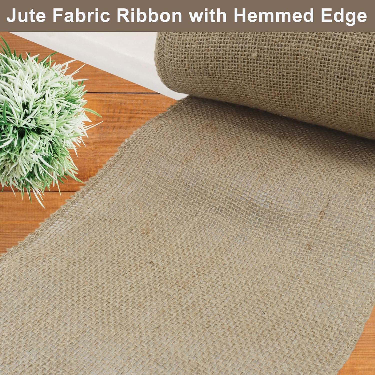 - Premium natural jute texture: Crafted from burlap ribbon with hemmed edges to prevent fraying. The raw jute fabric retains its rustic texture without synthetic coatings.