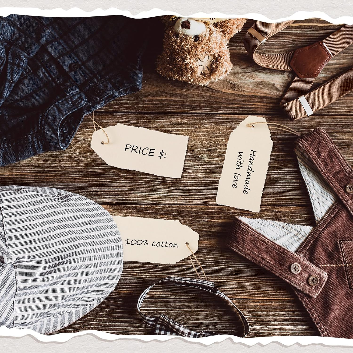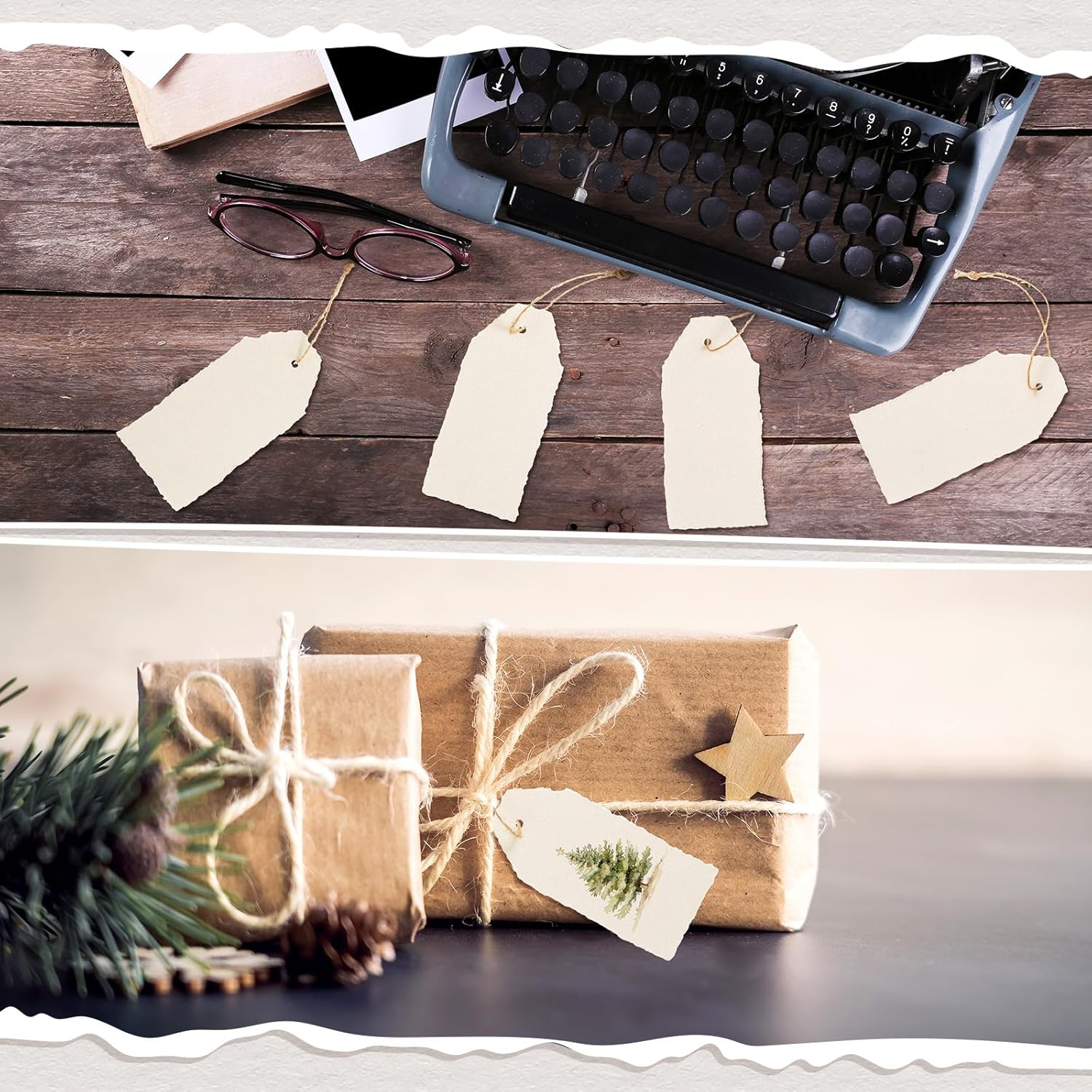 - Vintage Aesthetic Appeal: the charming vintage beige color of these deckled edge tags with attached string adds timeless elegance to any occasion; The distinctive deckle edge design effortlessly blends rustic charm with sophistication, making them ideal arts and crafts tags that elevate your projects