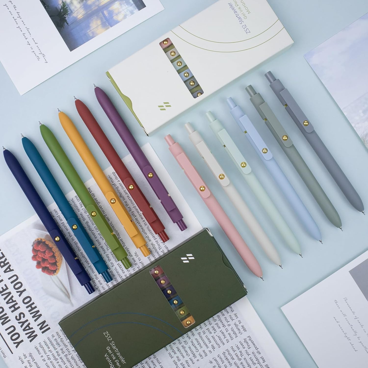 Gel Pens, 12 Pack Gold Retro and Gold Morandi 0.5mm Black Ink Pens Fine Point Smooth Writing Pens for School Office Supplies, Gifts for Women Girls