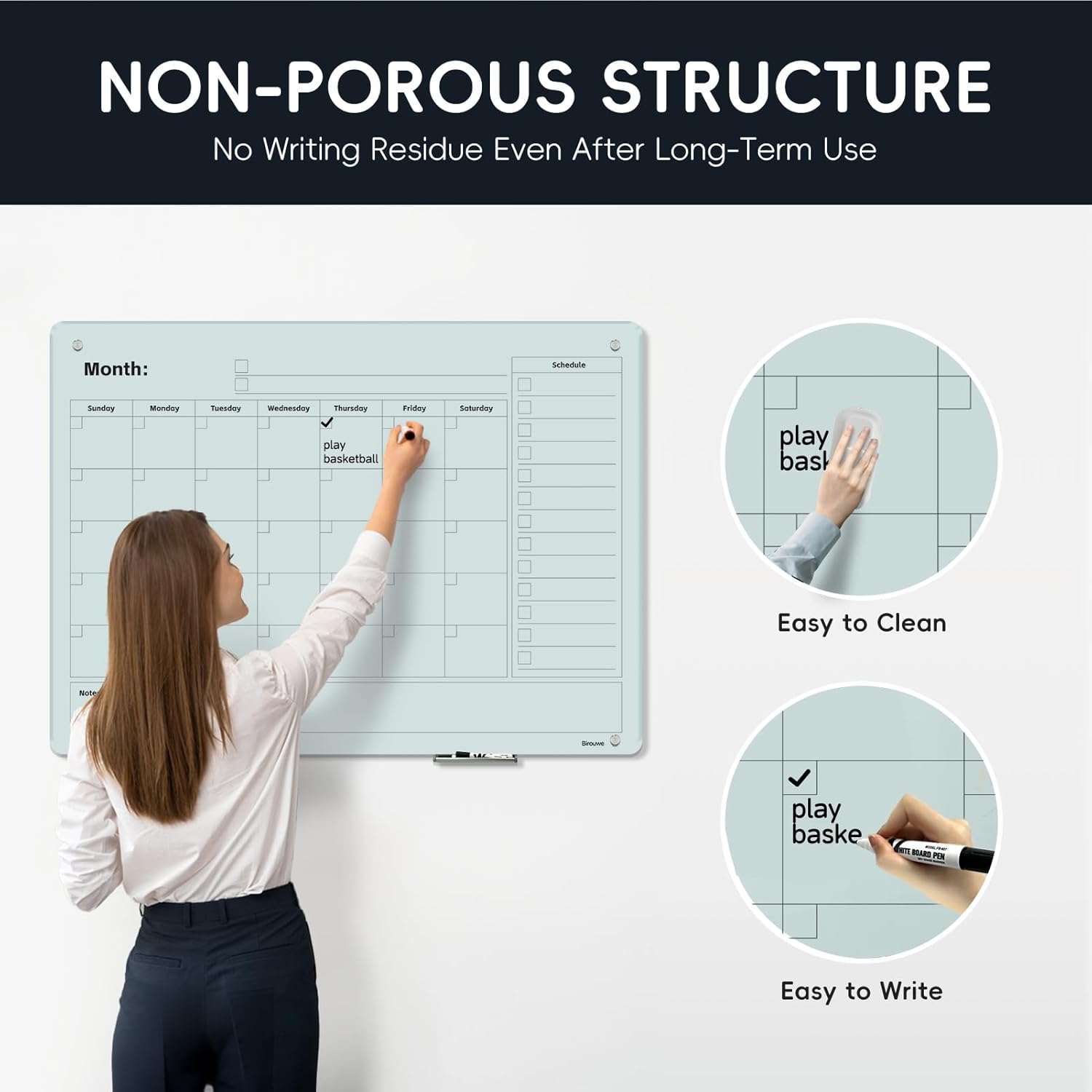 - Superior Durability & Clarity: Crafted from high-density tempered glass, our dry erase whiteboard offers unmatched durability and resilience. It resists stains, ghosting, scratches, and dents, ensuring a clear and pristine surface for years of heavy use. Perfect for frequent writing, erasing, and rewriting without leaving any marks.