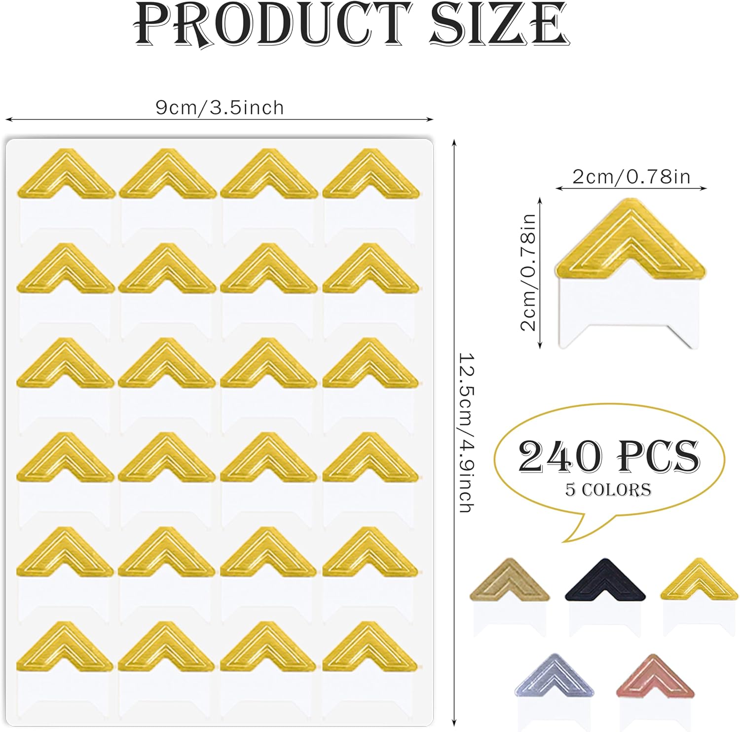 240 Pieces Photo Corners Self Adhesive Photo Corner Stickers, Picture Mounting Corners Acid Free Photo Corner for DIY Scrapbook, Album, Picture Frames, Journal Supplies (Multicolor)