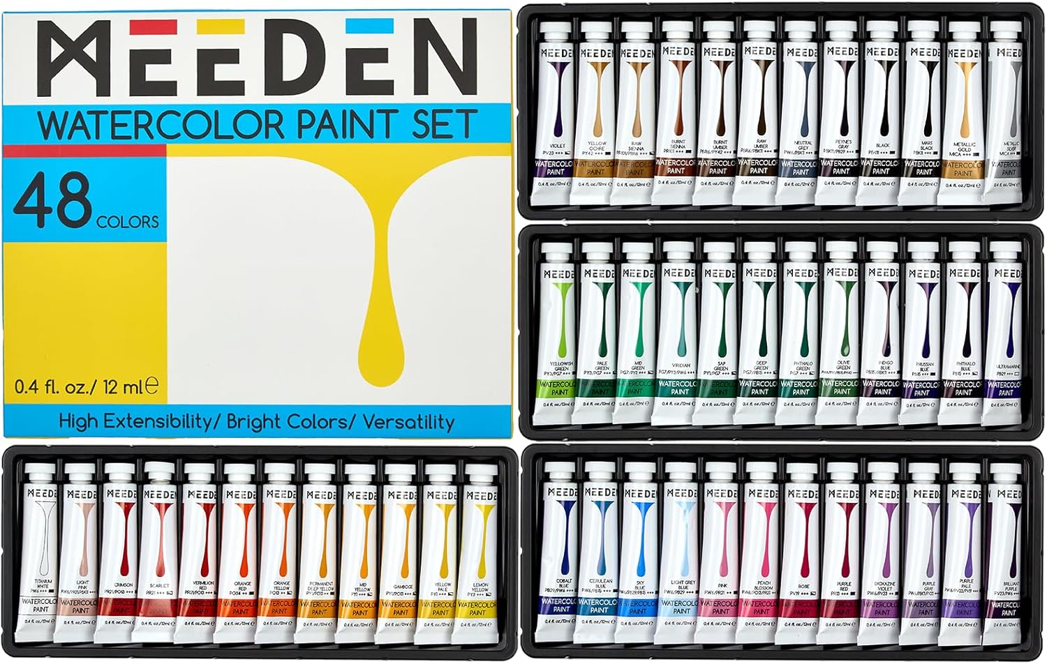 MEEDEN Watercolor Paint Tubes Set - 48 x 12ml (0.4 oz) Colors Painting Set Art Supplies - Non Toxic Water Color Paint for Adults Beginners Students