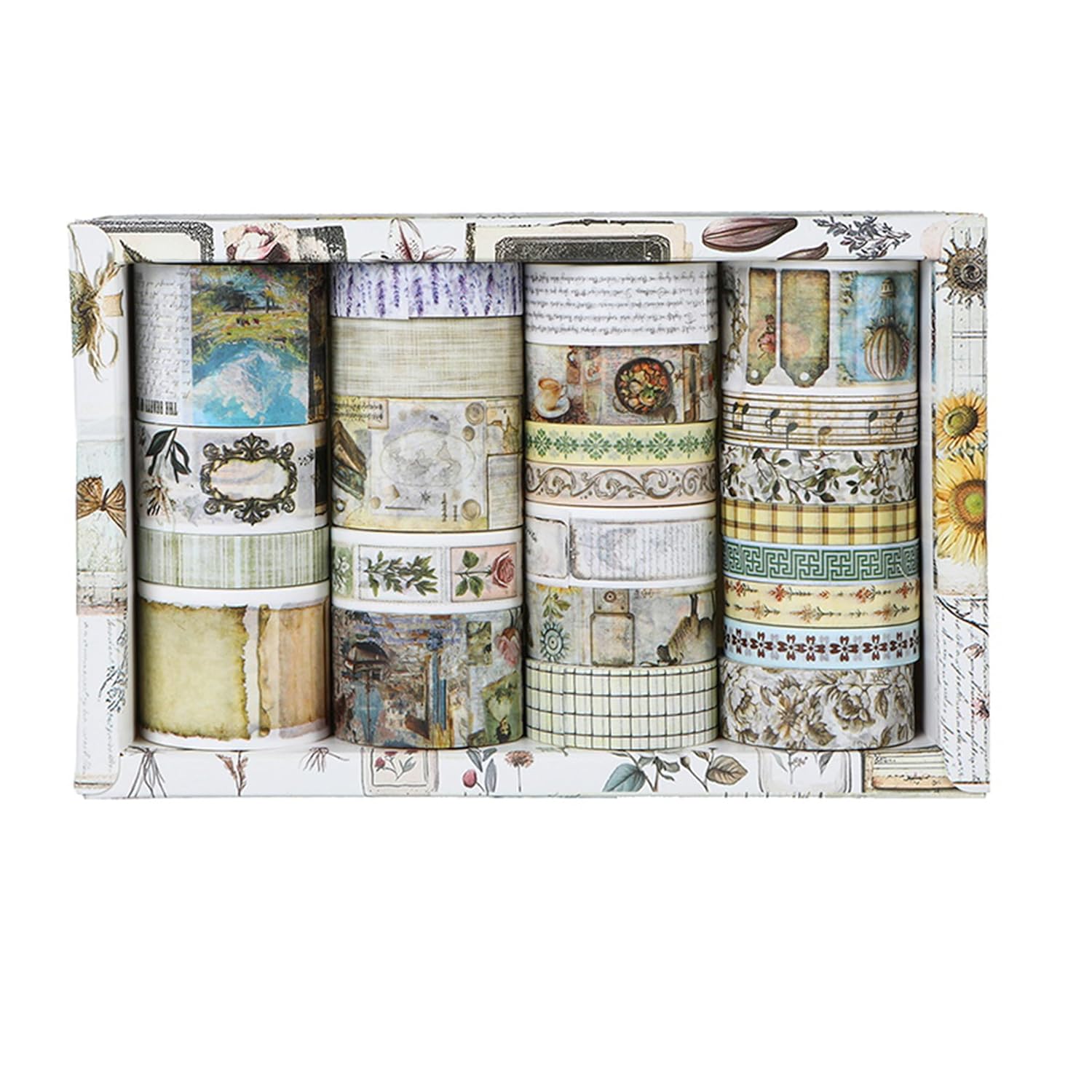 - 👍【CLASSIC AESTHETIC DESIGN】Immerse your projects in nostalgia with 24 unique washi tape rolls, each featuring a different retro-inspired pattern. From antique floral prints and old postcards to vintage maps and faded manuscripts, every roll adds a touch of timeless charm to your crafts