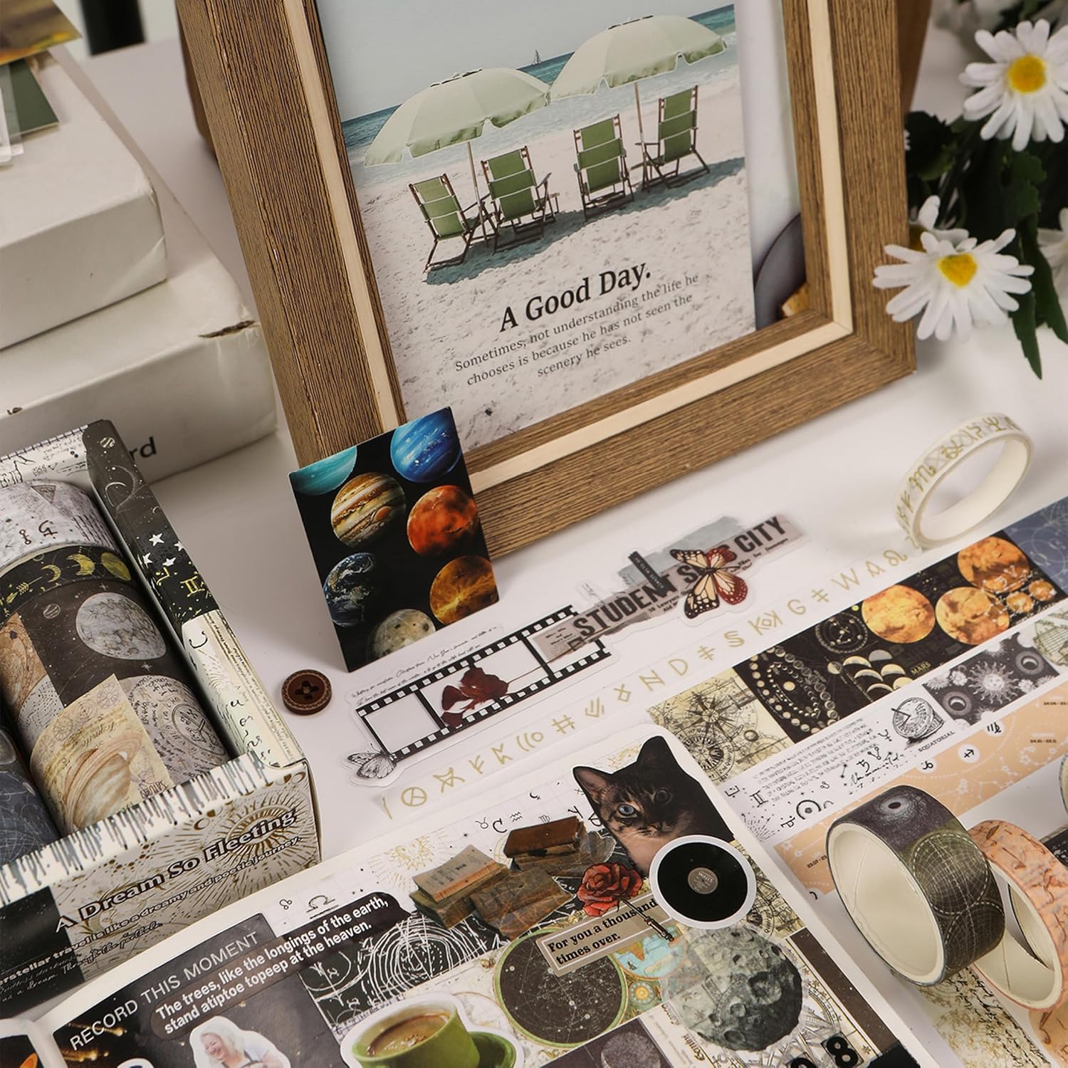 Vintage Washi Tape Set - 24 Rolls Arts Adhesive Tapes Assorted Retro Decorative Masking Tape Sets for Craft, Kids, Scrapbook, DIY, Gift Wrapping (11-Celestial Dreams)