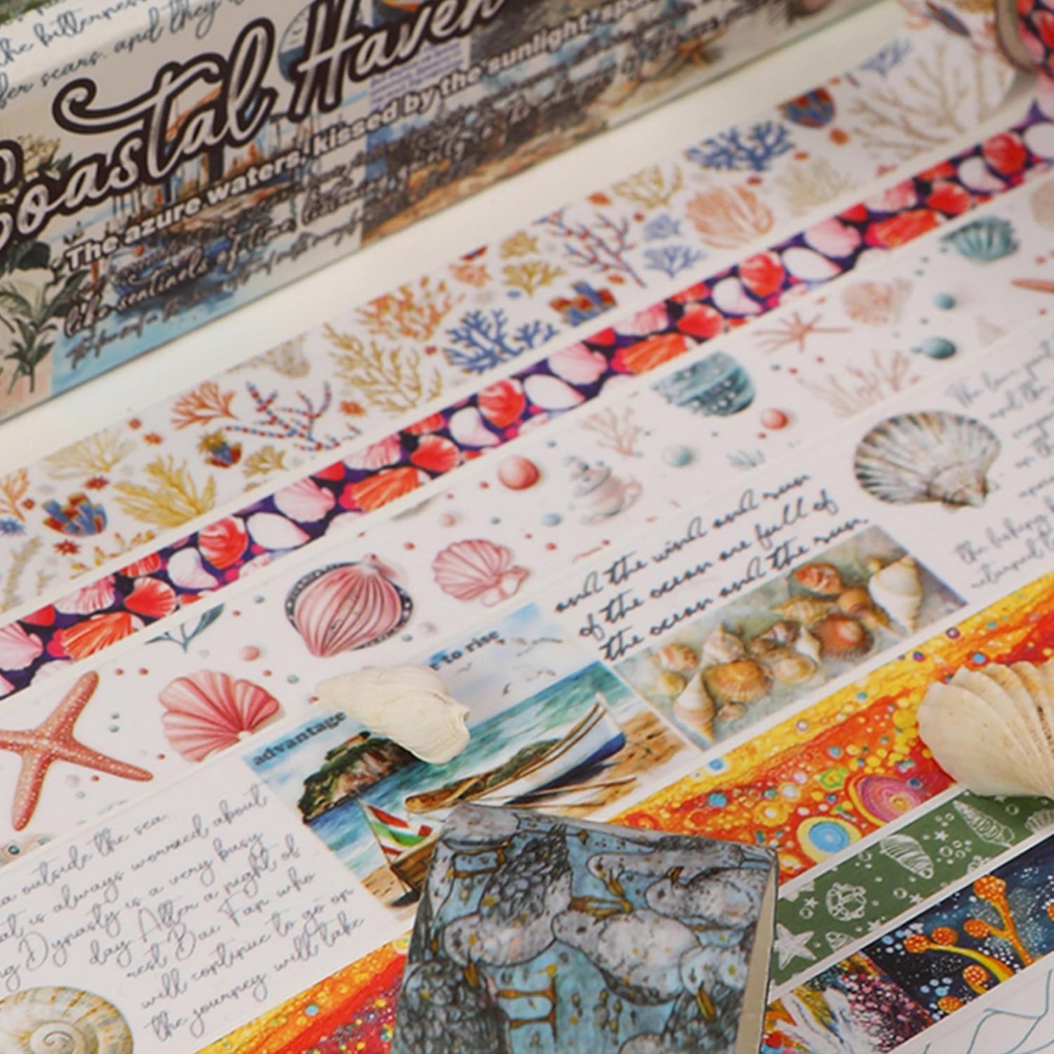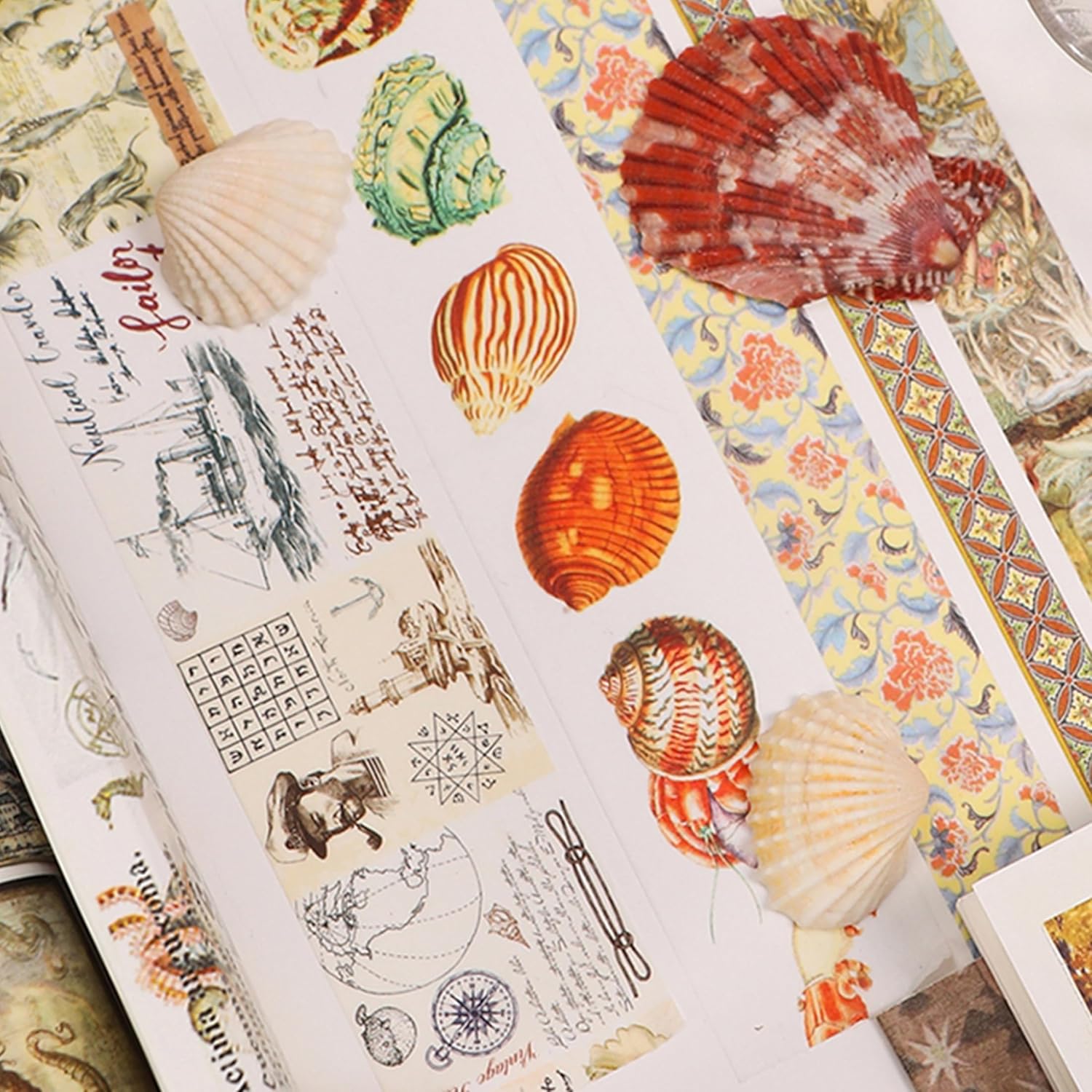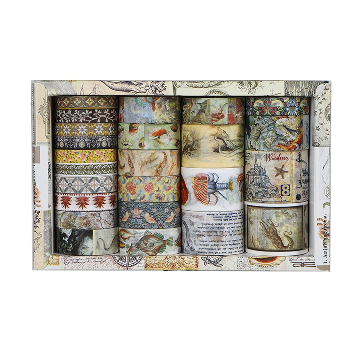 Vintage Washi Tape Set - 24 Rolls Arts Adhesive Tapes Assorted Retro Decorative Masking Tape Sets for Craft, Kids, Scrapbook, DIY, Gift Wrapping (3-Ocean Odyssey)