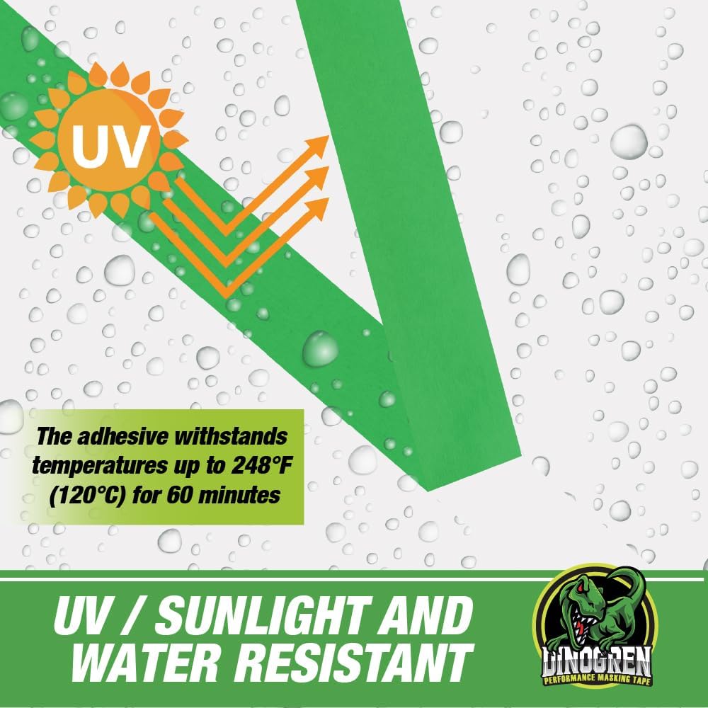 LAUCO DINOGREN High Performance Automotive Masking Tape (0.75 in x 60 yd, 12 Rolls) – Green Crepe Tape for Car Paint, Heat & Water Resistant, Body Shop Use, Clean Removal, Multi-Surface Application