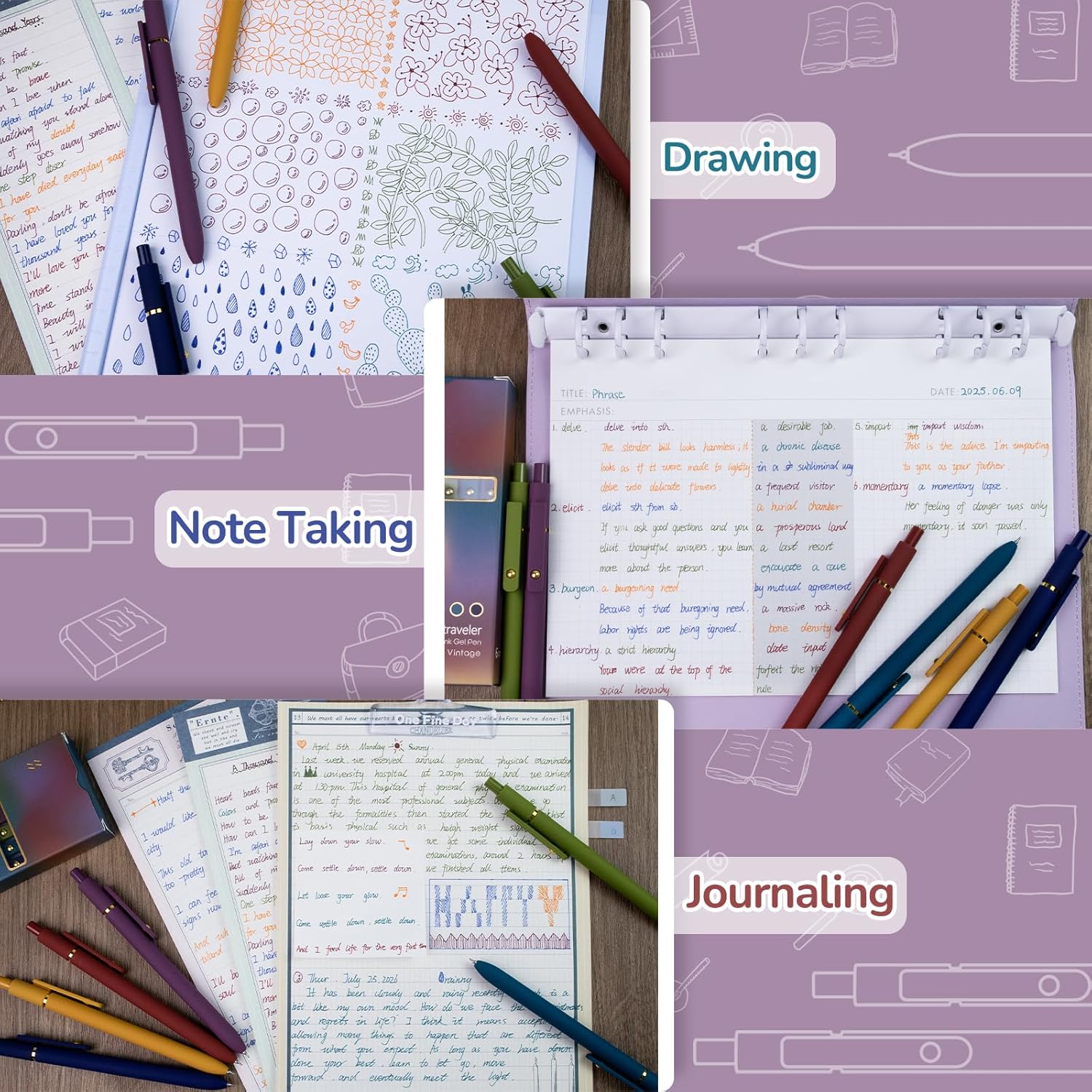 6 Pcs Color Pens for Journaling 0.5mm Fine Point Colored Gel Ink Pen, Smooth Writing Colorful Pens for Note Taking, Gift Set for Women & Men (6 Pcs Vintage Gold)