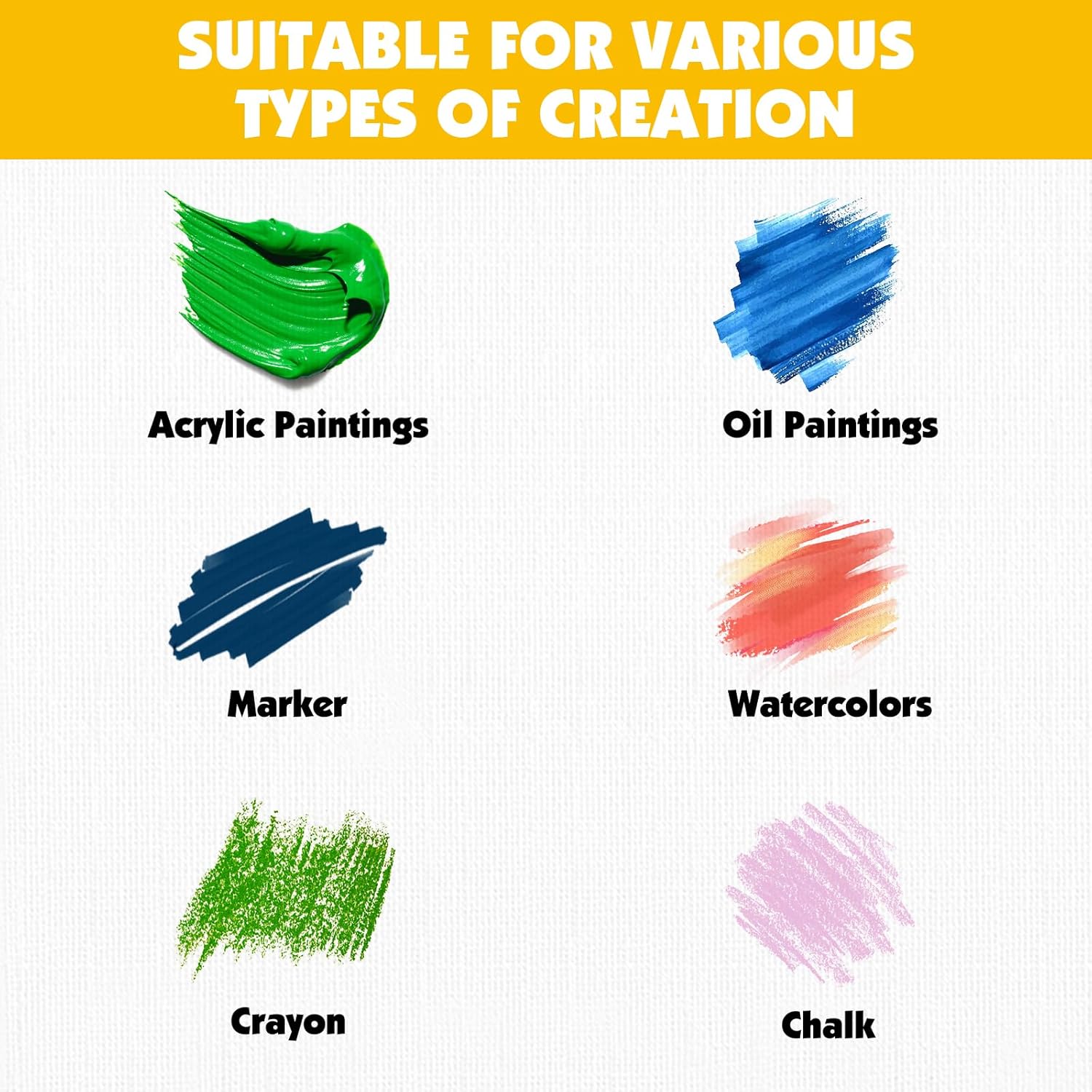 - 【Widely Use】: Blank canvases for painting are suitable for professional painters of all levels, the canvas can effectively absorb various pigments such as oil painting, watercolor, acrylic paint, watercolor, etc.