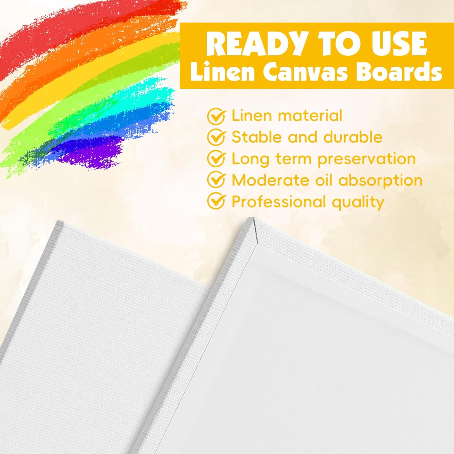 - 【Professional Quality】: The surface of the painting canvas is smooth and the texture is delicate. The linen canvas board is stable and durable, acid-free, and can maintain bright colors for a long time, making it very suitable for professional artists to create.