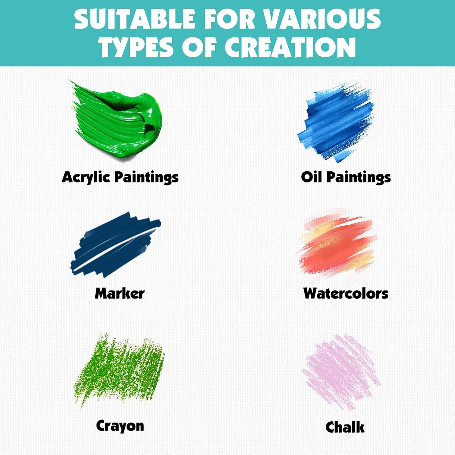 - 【Widely Use】: Blank canvases for painting are suitable for professional painters of all levels, the canvas can effectively absorb various pigments such as oil painting, watercolor, acrylic paint, watercolor, etc.
