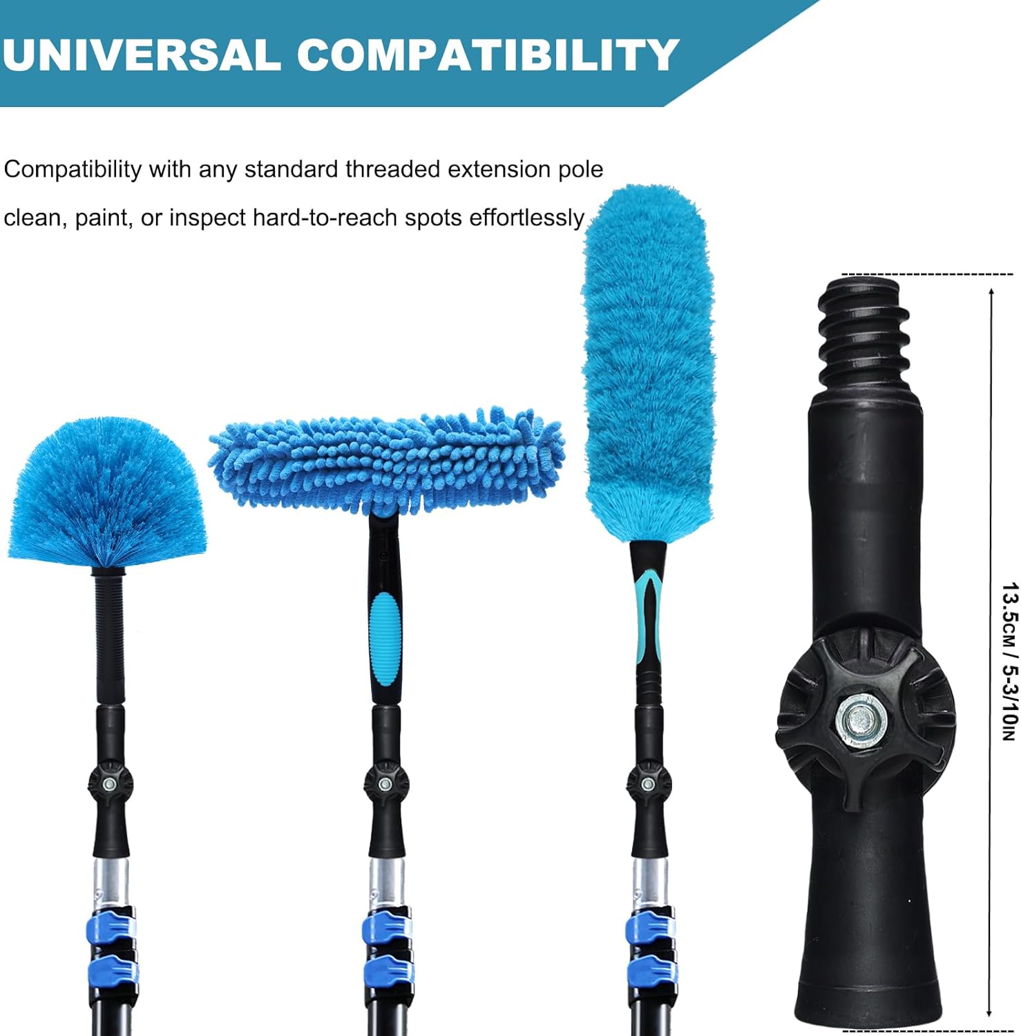 - 🔹 Universal Compatibility with Threaded Poles & Attachments – Works with any standard threaded extension pole, mop, or broom handle. Compatible with microfiber dusters, paint rollers, squeegees, pruning saws, and more for versatile indoor/outdoor use. (pole not included)