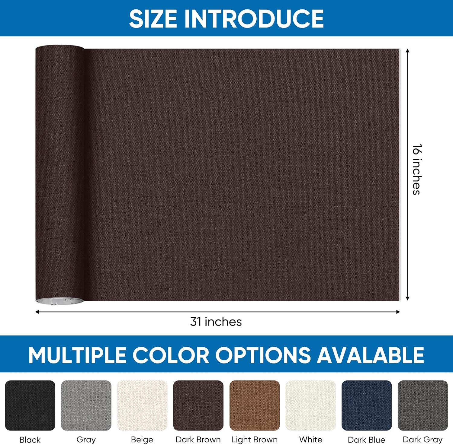 Oversized Canvas Patch 16 "x31, Self-Adhesive Waterproof Canvas Patch Set for Repairing Tents, Couch, Boat Covers, Camping Chairs, Awnings, Car Seats.(Dark Brown)