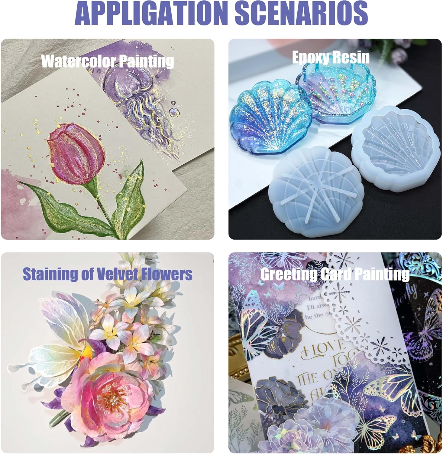 - Safe & Multipurpose Formula - Crafted with natural mica powder, gum arabic, the Glisdyck watercolors paint set are safe for kids and adults;use them for watercolor painting, epoxy resin, card making, or staining of velvet flower ,DIY crafts etc