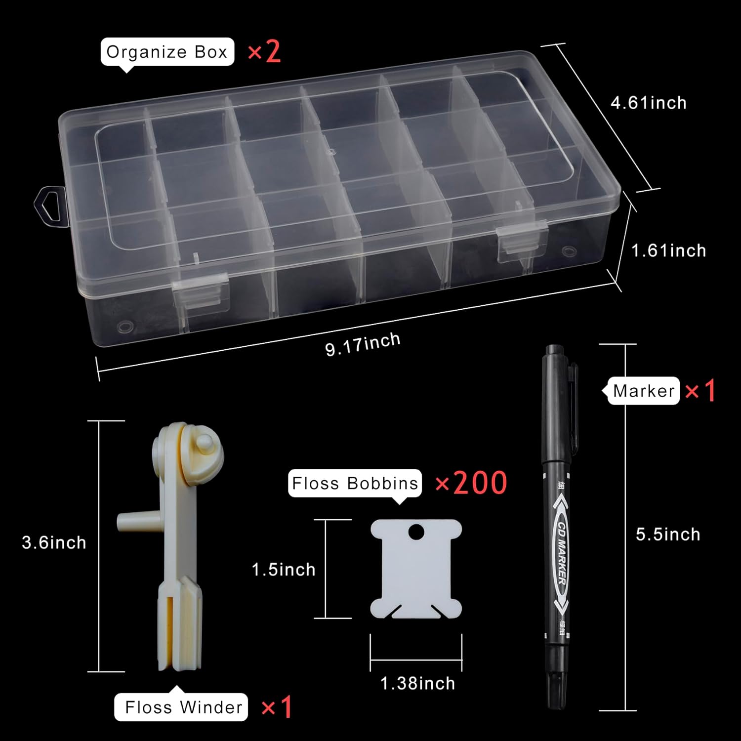 Embroidery Floss Organizer, 2 Removable 18 Compartments Cross Stitch Thread Storage Box with 200 Plastic Embroidery Floss Bobbins, 1 Floss Winder and 1 Marker
