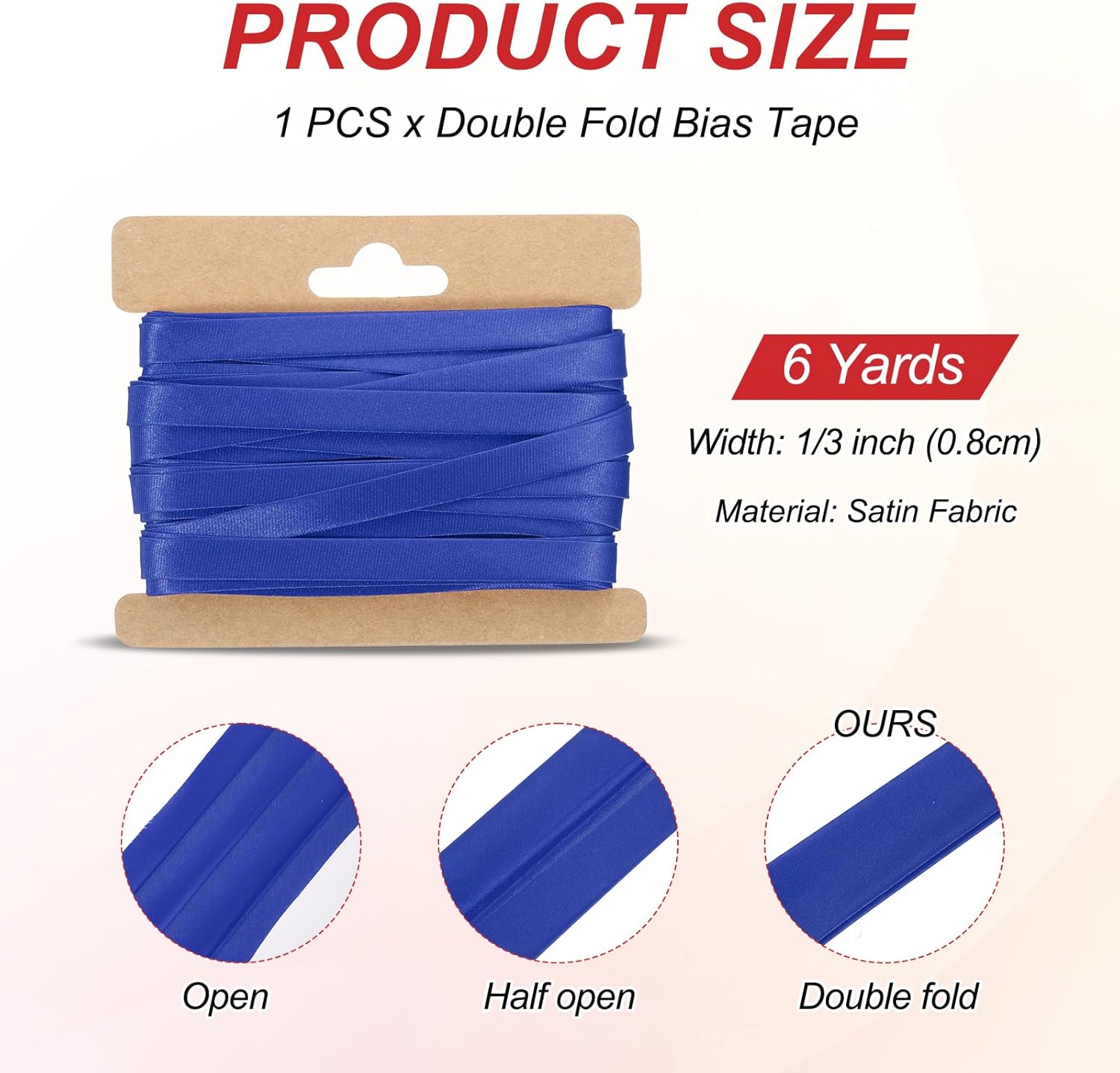 - Package contains: 1 x Double Fold Bias Tape; Width: 1/3 inch (0.8cm); Length: 6 Yards; Color: Sapphire Blue; Material: Satin Fabric