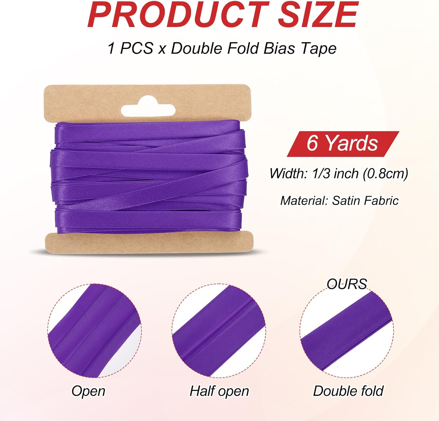 - Package contains: 1 x Double Fold Bias Tape; Width: 1/3 inch (0.8cm); Length: 6 Yards; Color: Purple; Material: Satin Fabric