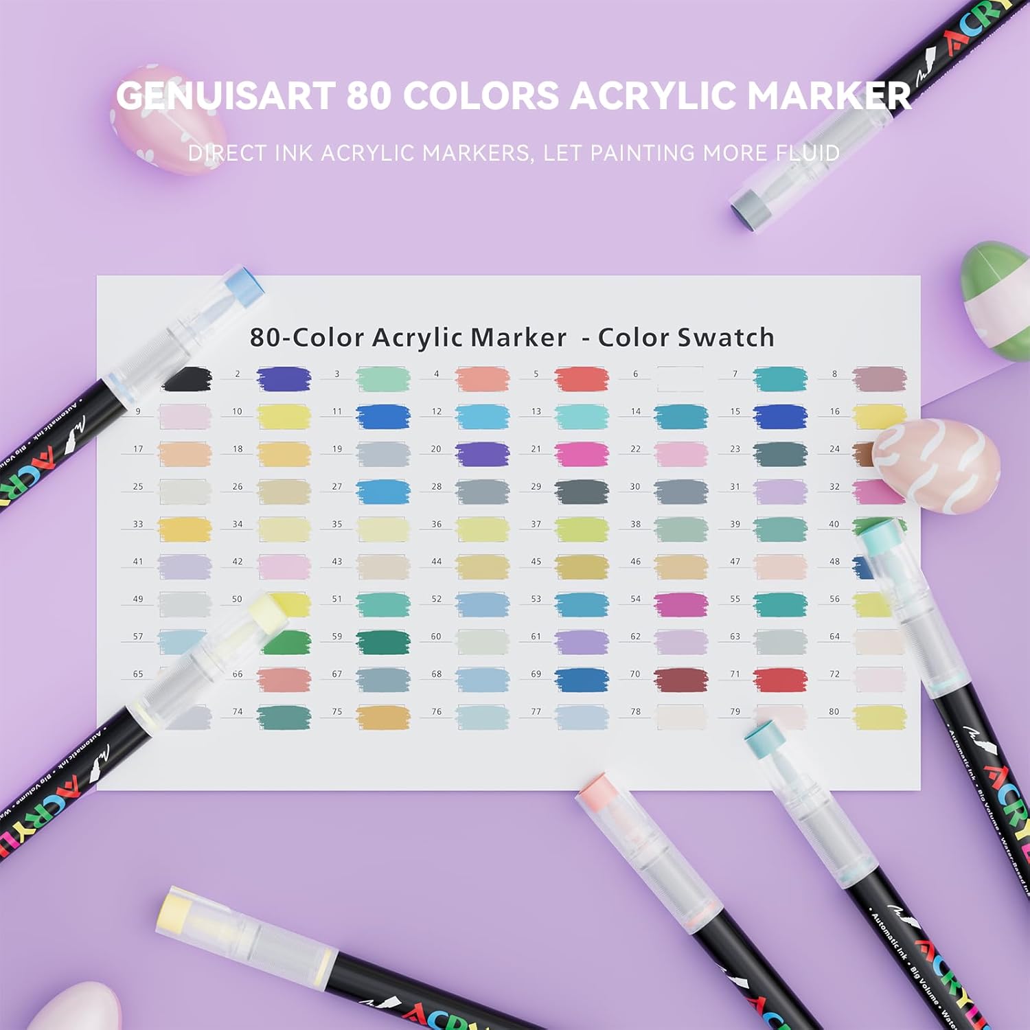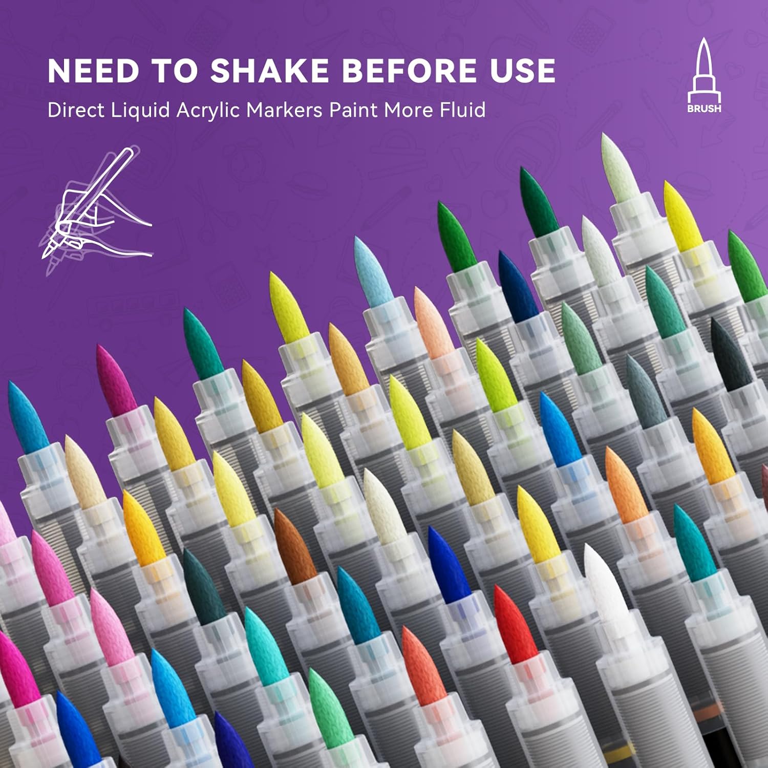 80 Colors Acrylic Marker With Brush Tip Automatic Ink Control, Water Based Ink Paint Markers For Rock Painting, Canvas, Wood, Ceramic, Glass, Stone, Fabric, DIY Crafts Textile & Art Supplies